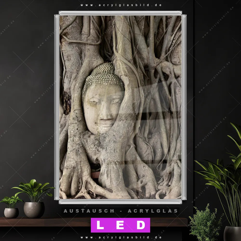 Wechsel-Acrylglas Canvalight® DIA | Buddha in Baumwurzeln | Hochformat