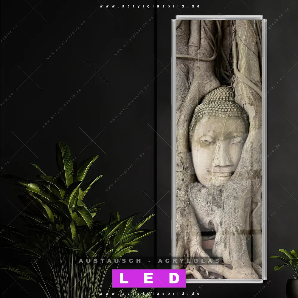 Wechsel-Acrylglas Canvalight® DIA | Buddha in Baumwurzeln | Schmal