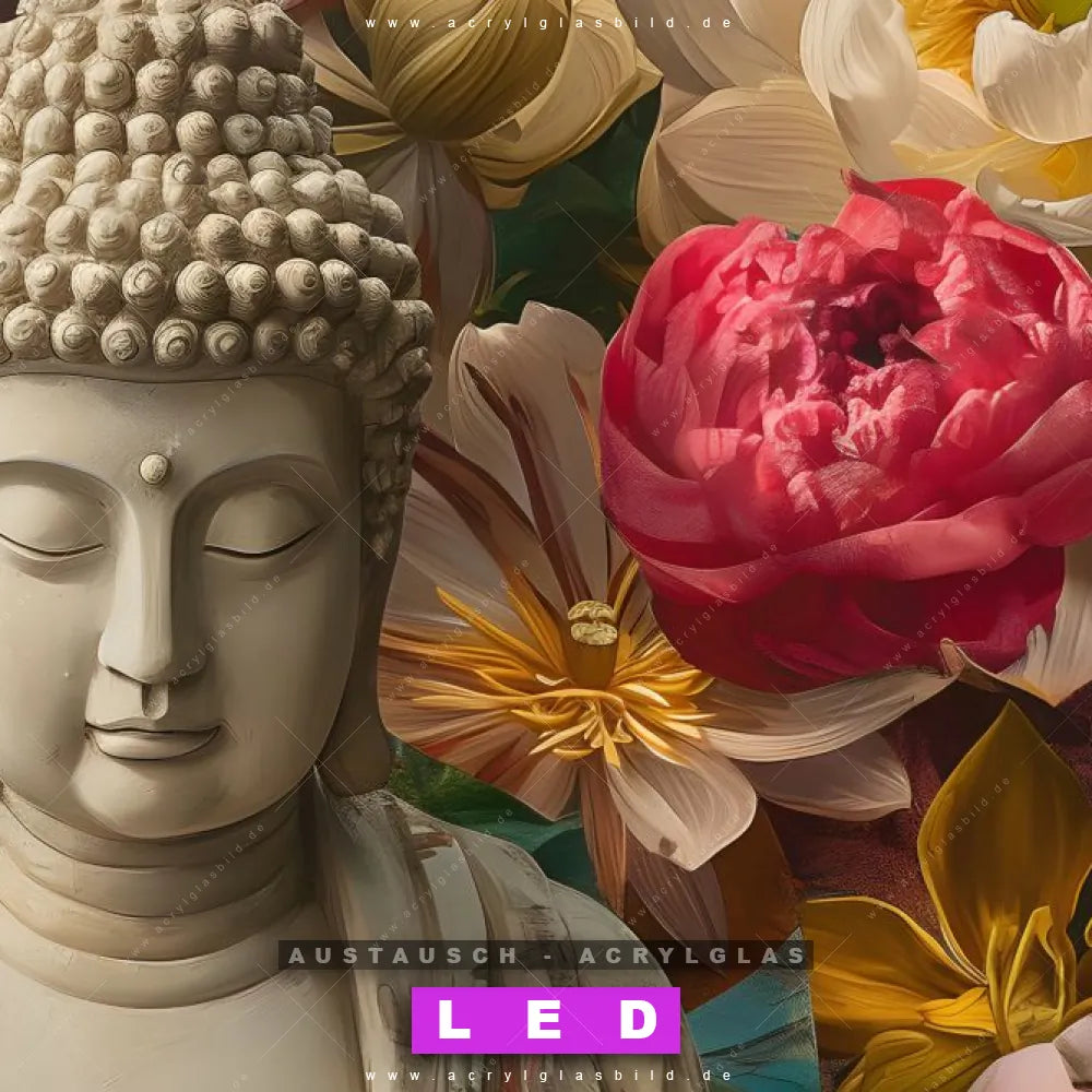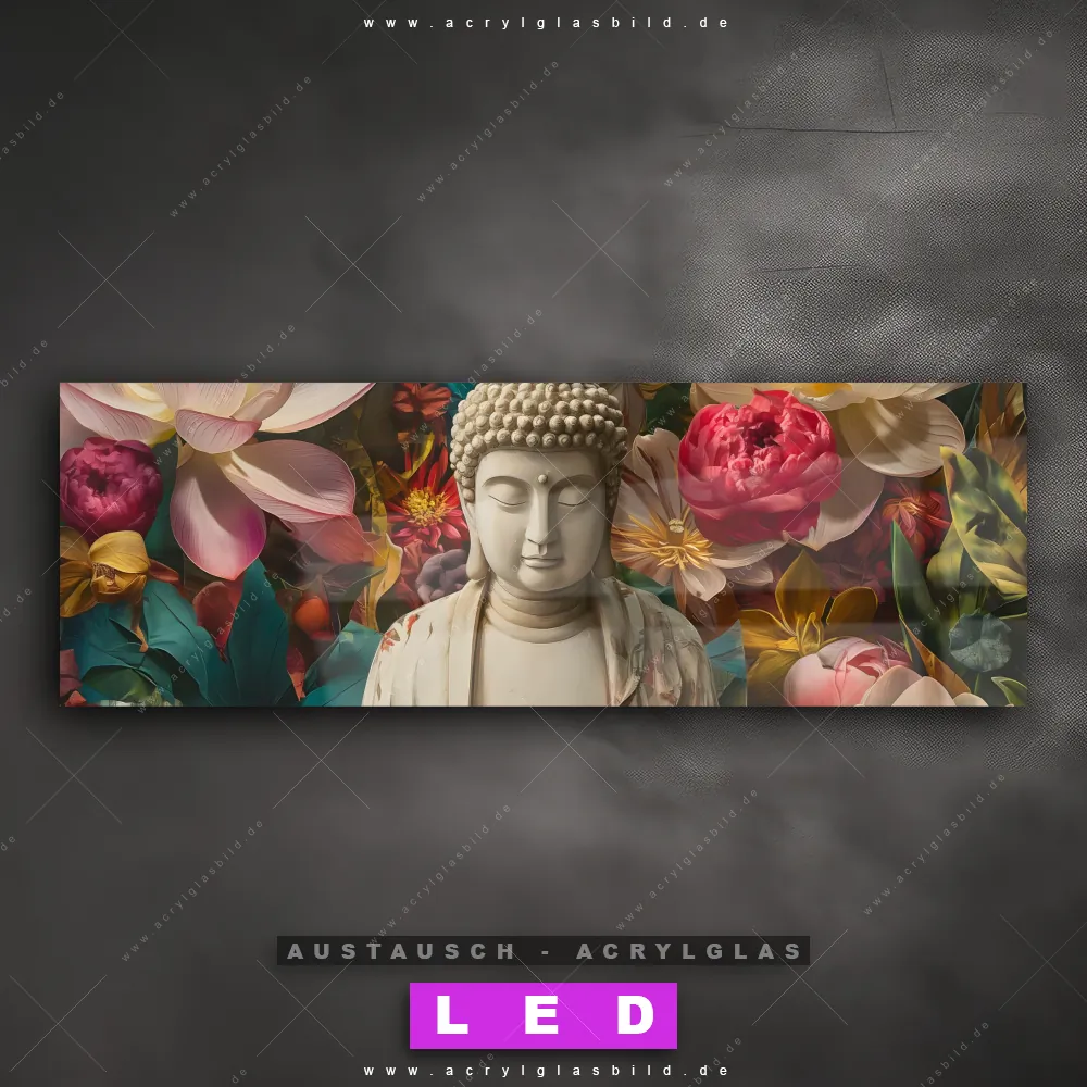 Wechsel-Acrylglas Canvalight® DIA | Buddha in farbenfrohen Blumen | Panorama