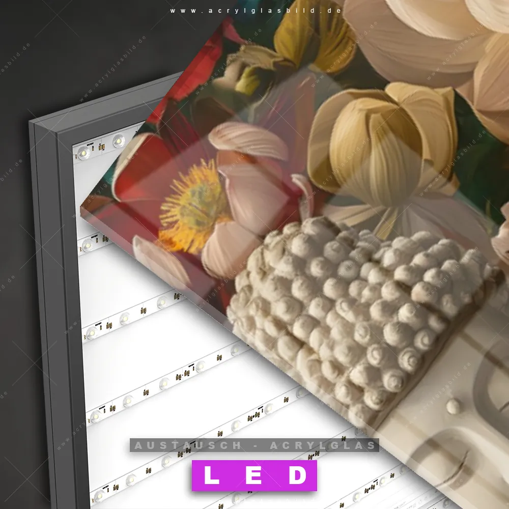 LED Bild mit 5,5cm Bautiefe, homogener Ausleuchtung, Farbtempertursteuerung, dimmbar und mit Fernbedienung.