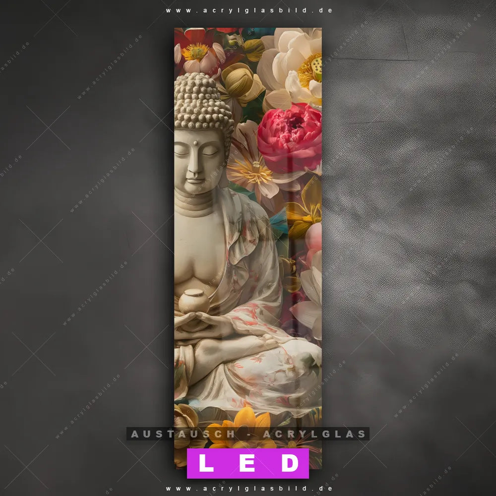 Wechsel-Acrylglas Canvalight® DIA | Buddha in farbenfrohen Blumen | Schmal