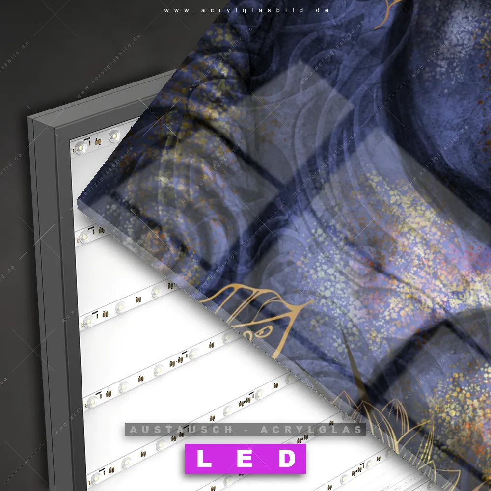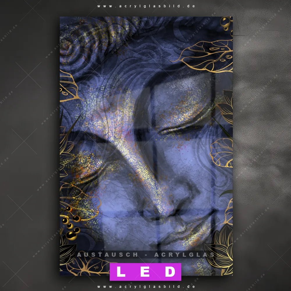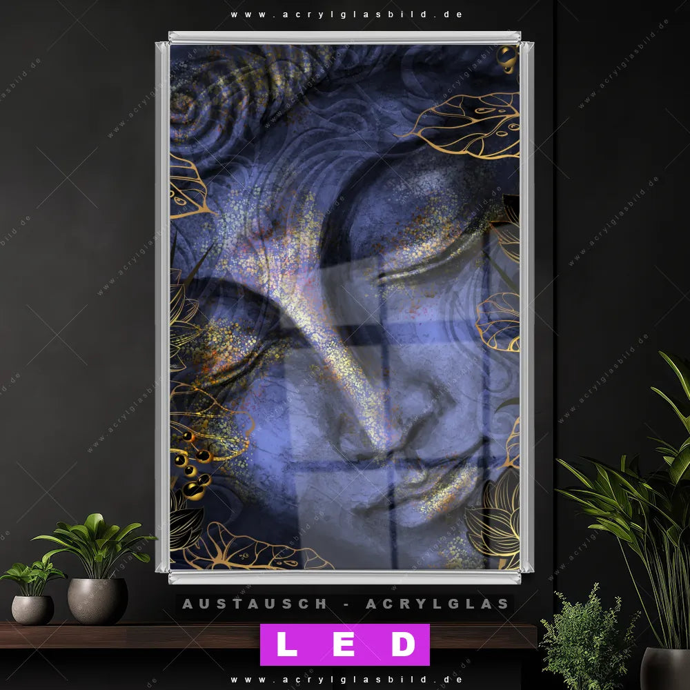 Wechsel-Acrylglas Canvalight® DIA | Buddha in Gold & Blau | Hochformat