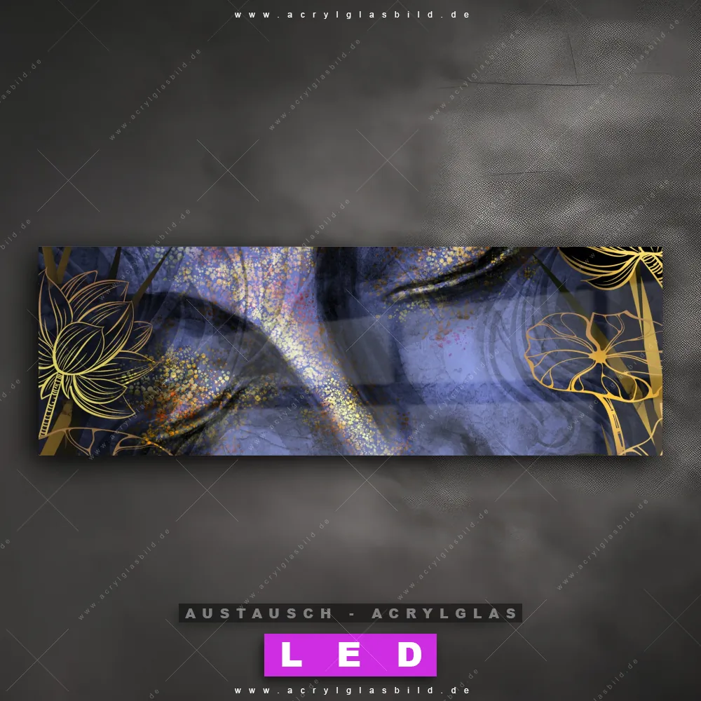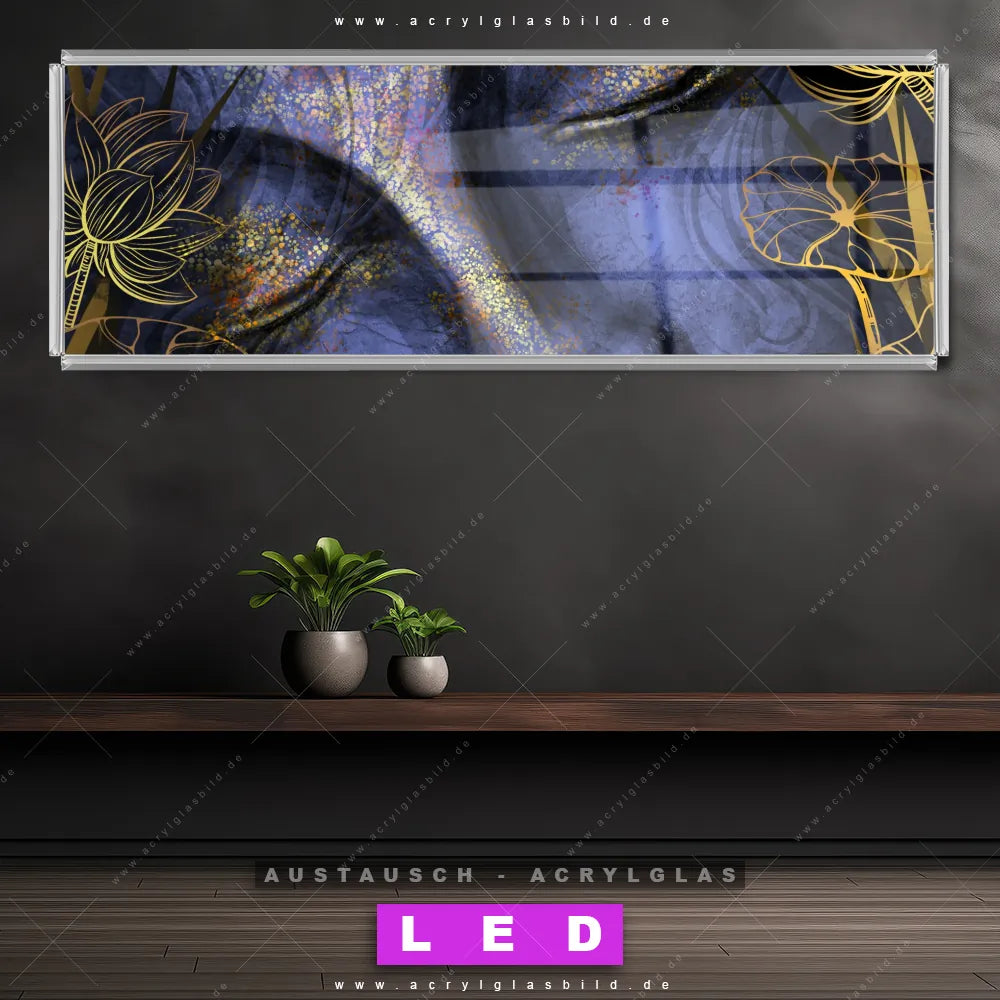 Wechsel-Acrylglas Canvalight® DIA | Buddha in Gold & Blau | Panorama