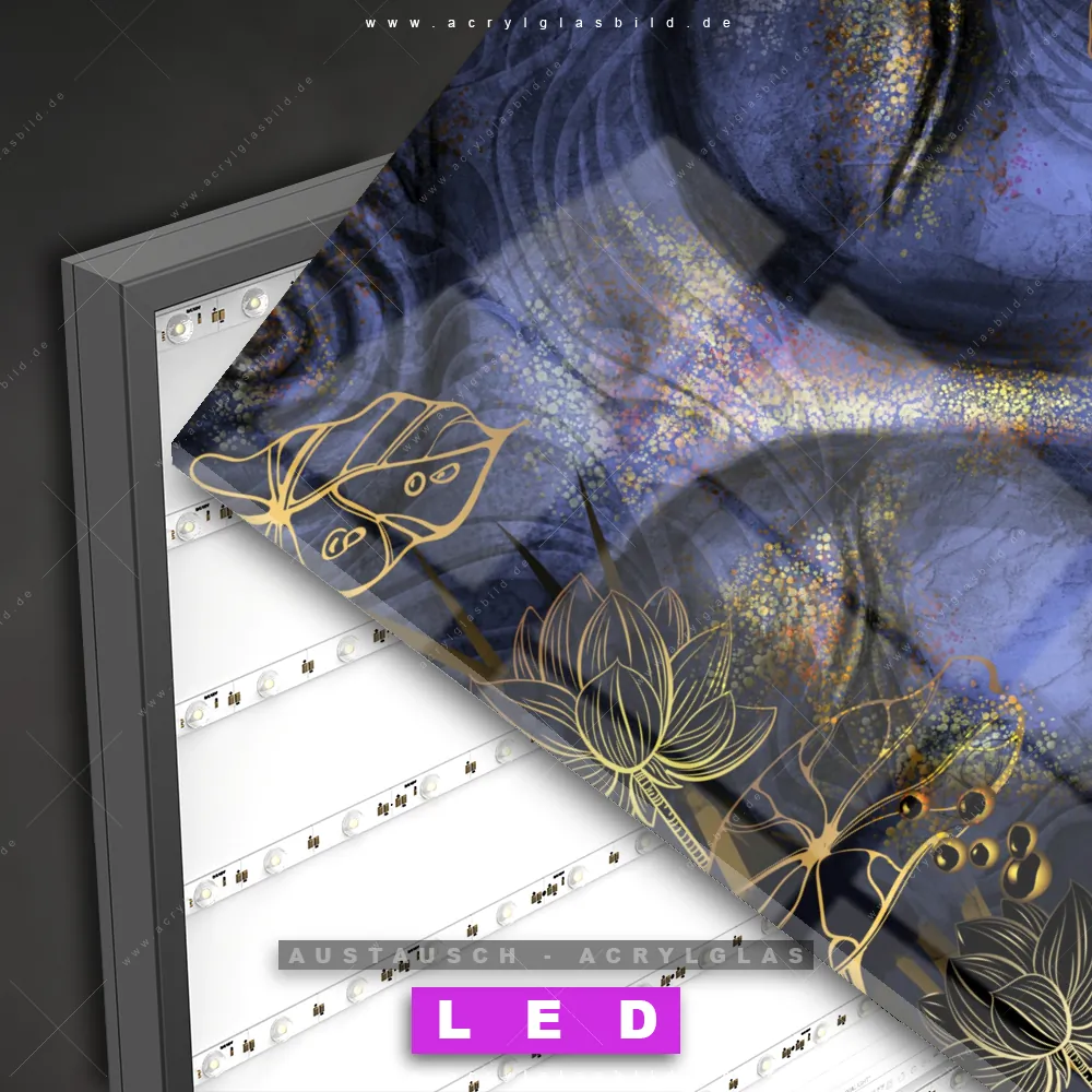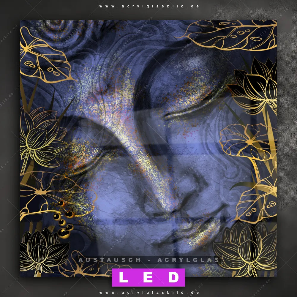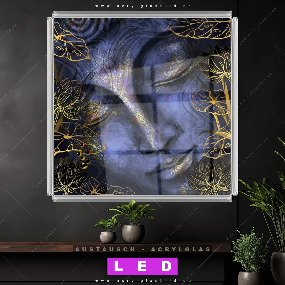 Wechsel-Acrylglas Canvalight® DIA | Buddha in Gold & Blau | Quadrat