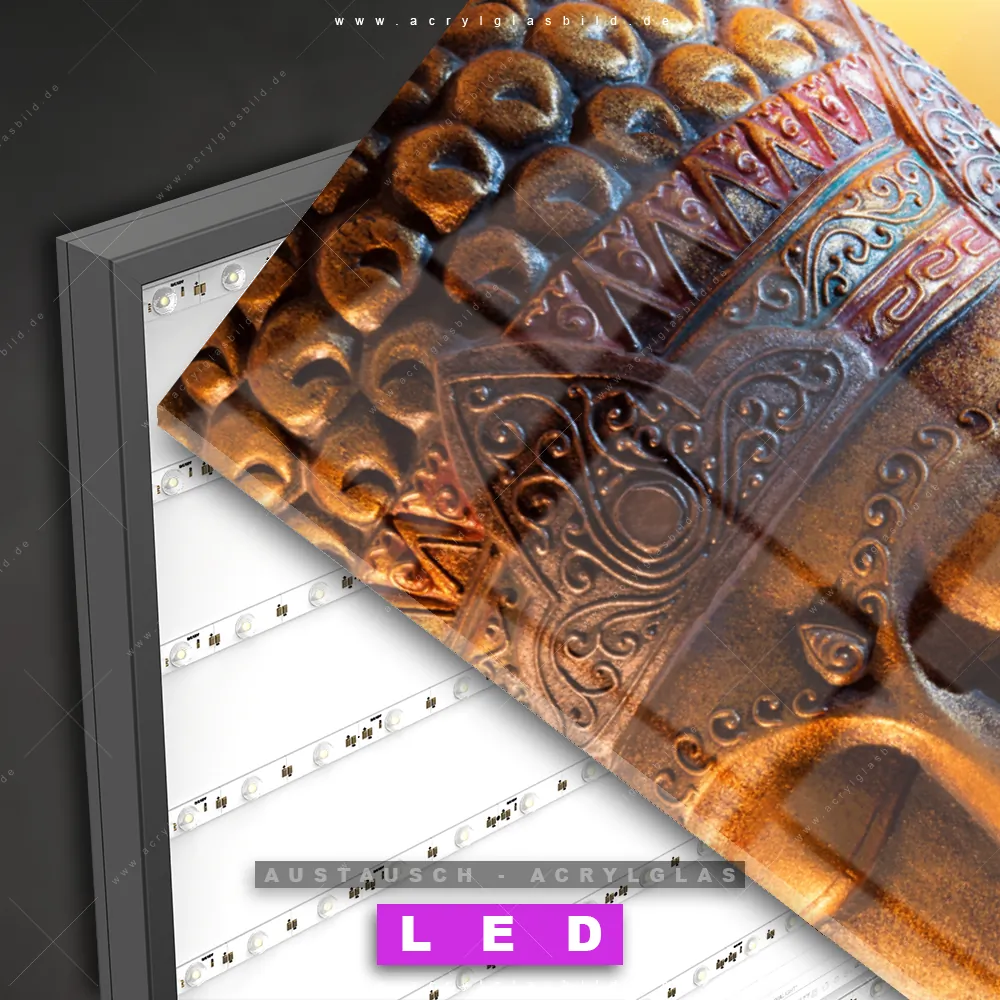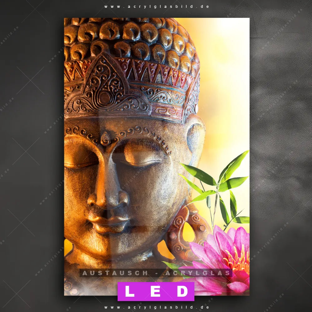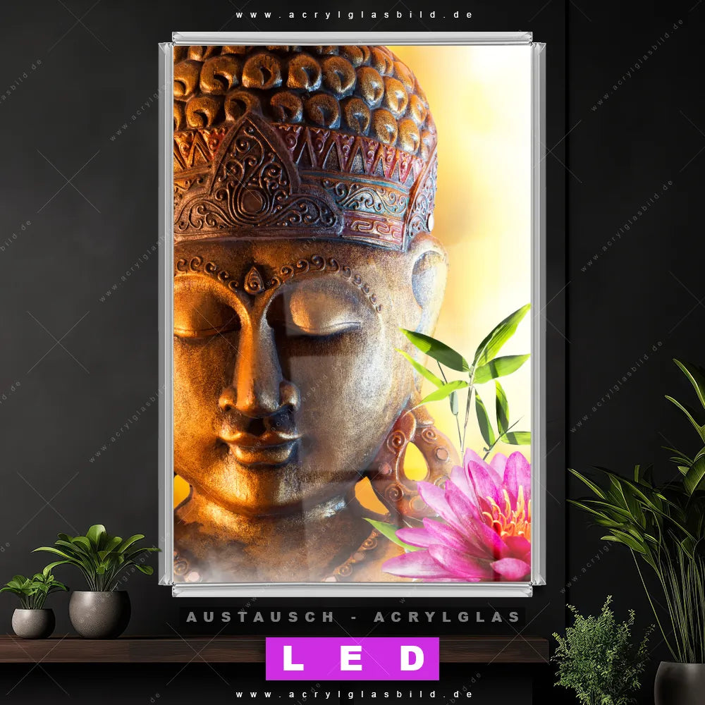 Wechsel-Acrylglas Canvalight® DIA | Buddha Kopf & Seerose | Hochformat