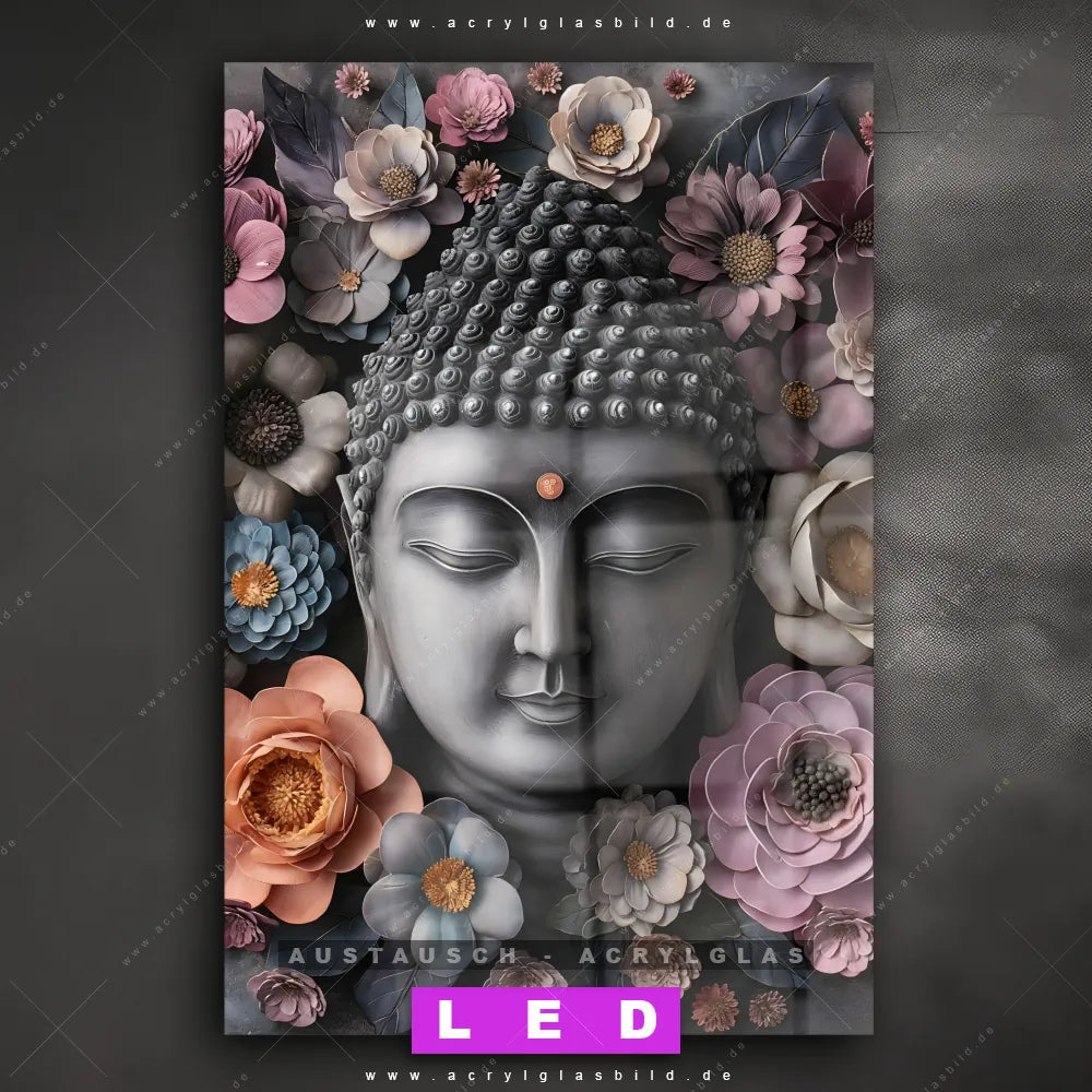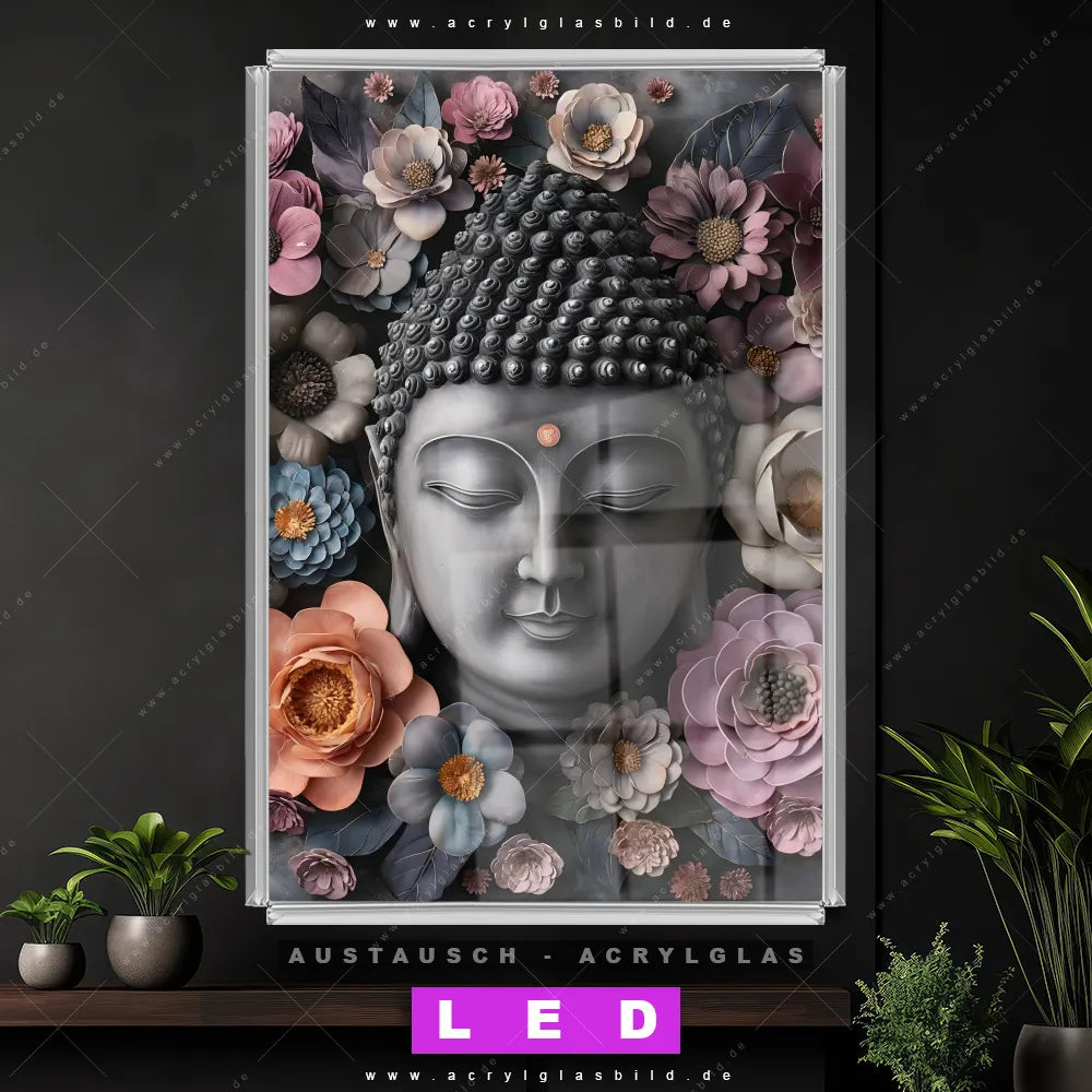 Wechsel-Acrylglas Canvalight® DIA | Buddha-Kunst mit Pastellblüten | Hochformat