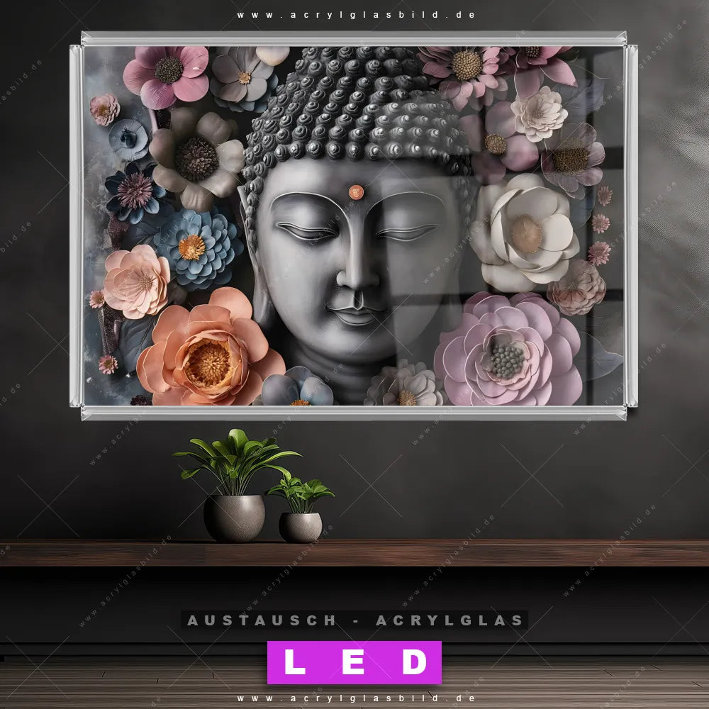 Wechsel-Acrylglas Canvalight® DIA | Buddha-Kunst mit Pastellblüten | Querformat