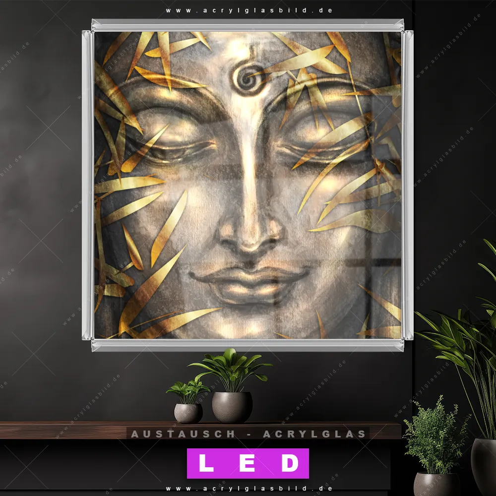 Wechsel-Acrylglas Canvalight® DIA | Buddha Silber & Gold | Quadrat