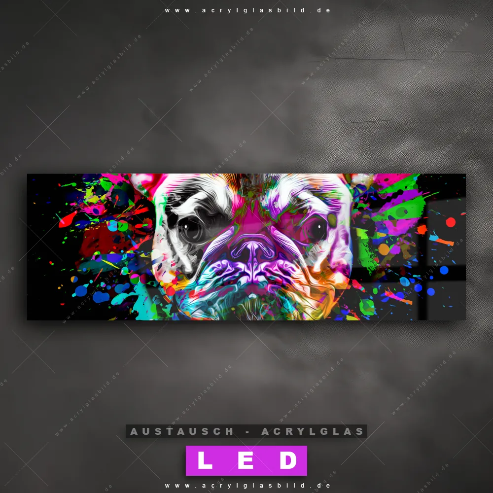 Wechsel-Acrylglas Canvalight® DIA | Bunte Bulldogge Schwarz | Panorama