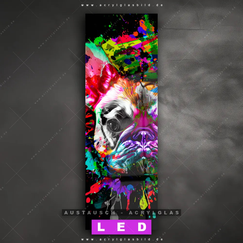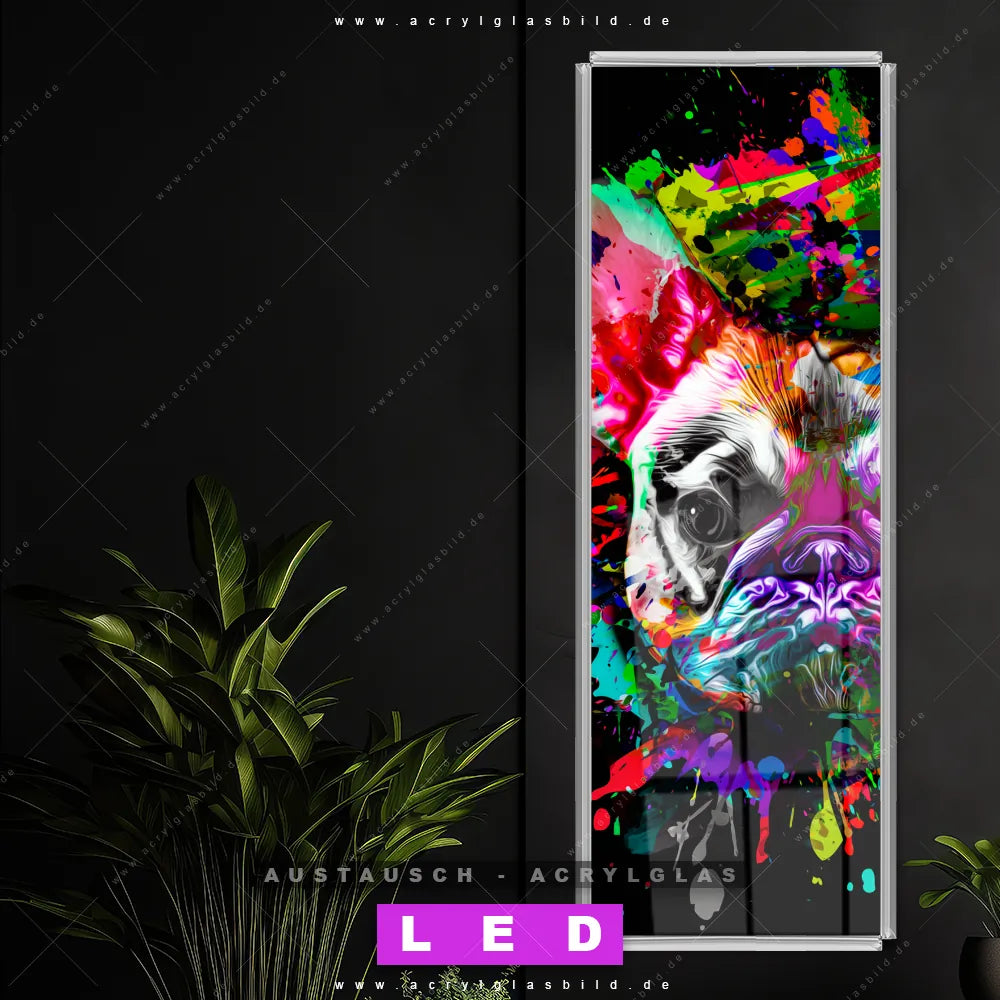Wechsel-Acrylglas Canvalight® DIA | Bunte Bulldogge Schwarz | Schmal