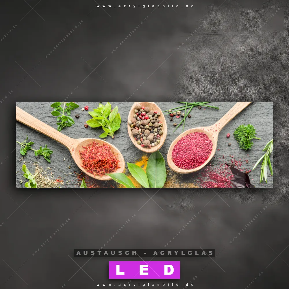 Wechsel-Acrylglas Canvalight® DIA | Bunte Gewürze in Holzlöffeln | Panorama