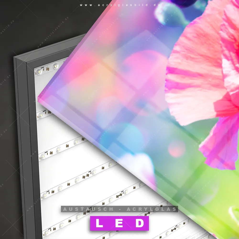 Begriffe wie Blume, Botanik, Pflanze, Natur, Mohn, Mohnblume, Wiese, Feld, Blüte, Blumen haben dich auf der Suche nach deinem neuen Austausch-Acrylglasbild inspiriert? Dann sollte das Wechsel-Acrylglasbild Blumen am Feldrand für dein bereits vorhandenes LED Acrylglasbild Canvalight® DIA den Weg zu dir finden.
