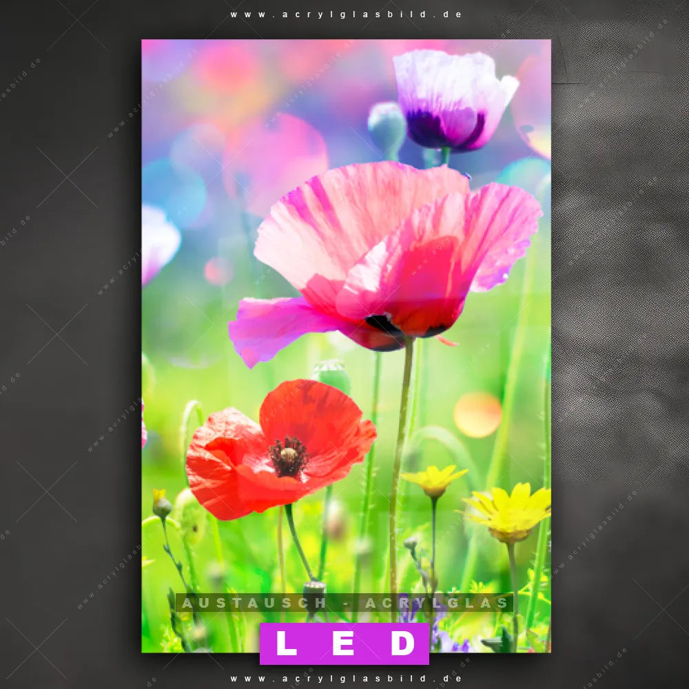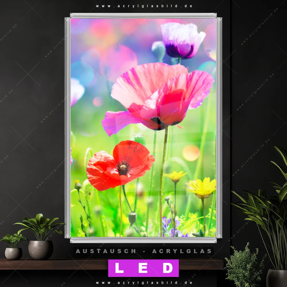 Wechsel-Acrylglas Canvalight® DIA | Bunte Mohnblumen | Hochformat