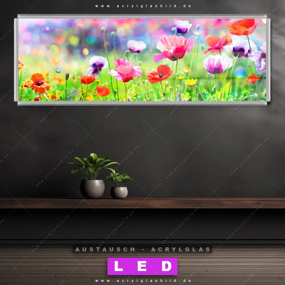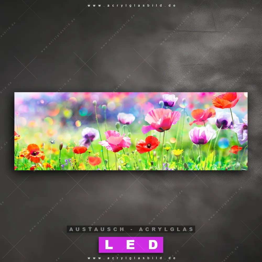 Wechsel-Acrylglas Canvalight® DIA | Bunte Mohnblumen | Panorama