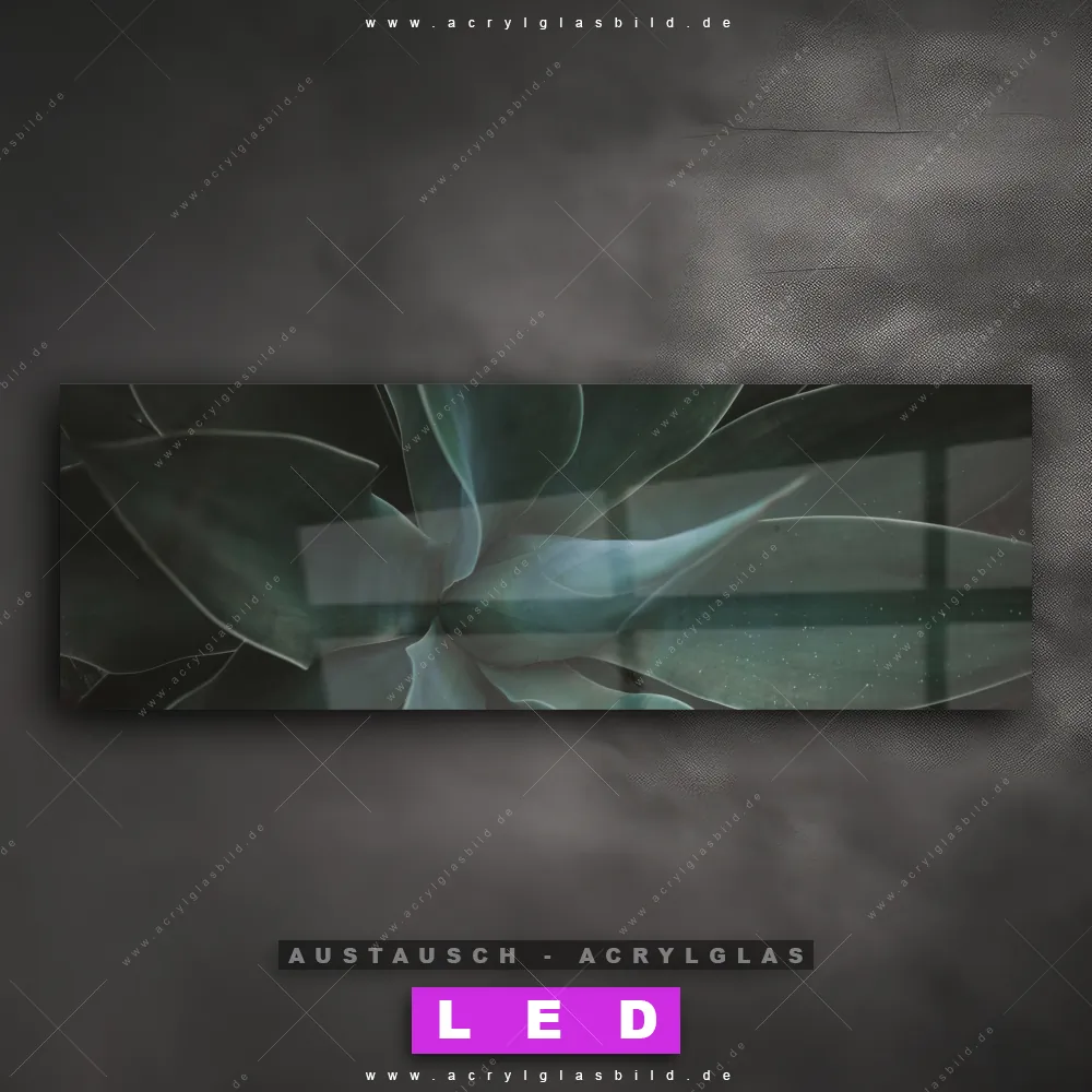 Begriffe wie Blumen | Botanik, Pflanze, Natur, Kaktus, Nahaufnahme, Vogelperspektive, Draufsicht, Blatt, Blätter haben dich auf der Suche nach deinem neuen Austausch-Acrylglasbild inspiriert? Dann sollte das Wechsel-Acrylglasbild Agavenpflanze für dein bereits vorhandenes LED Acrylglasbild Canvalight® DIA den Weg zu dir finden.
