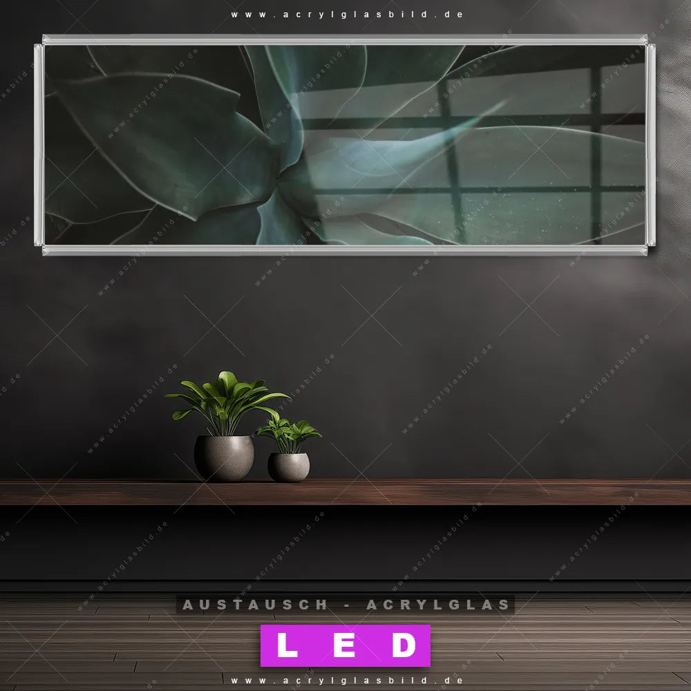 Wechsel-Acrylglas Canvalight® DIA | Dunkles Agavenblatt | Panorama