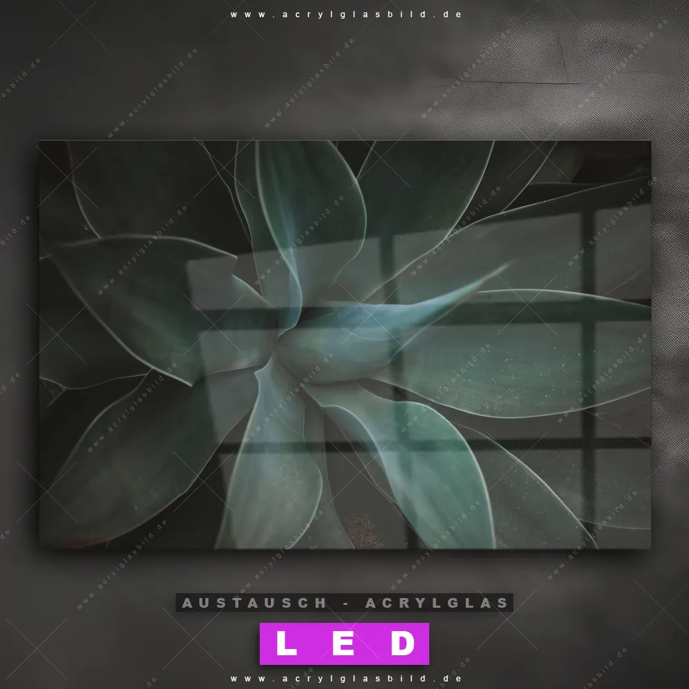 Begriffe wie Blumen | Botanik, Pflanze, Natur, Kaktus, Nahaufnahme, Vogelperspektive, Draufsicht, Blatt, Blätter haben dich auf der Suche nach deinem neuen Austausch-Acrylglasbild inspiriert? Dann sollte das Wechsel-Acrylglasbild Agavenpflanze für dein bereits vorhandenes LED Acrylglasbild Canvalight® DIA den Weg zu dir finden.
