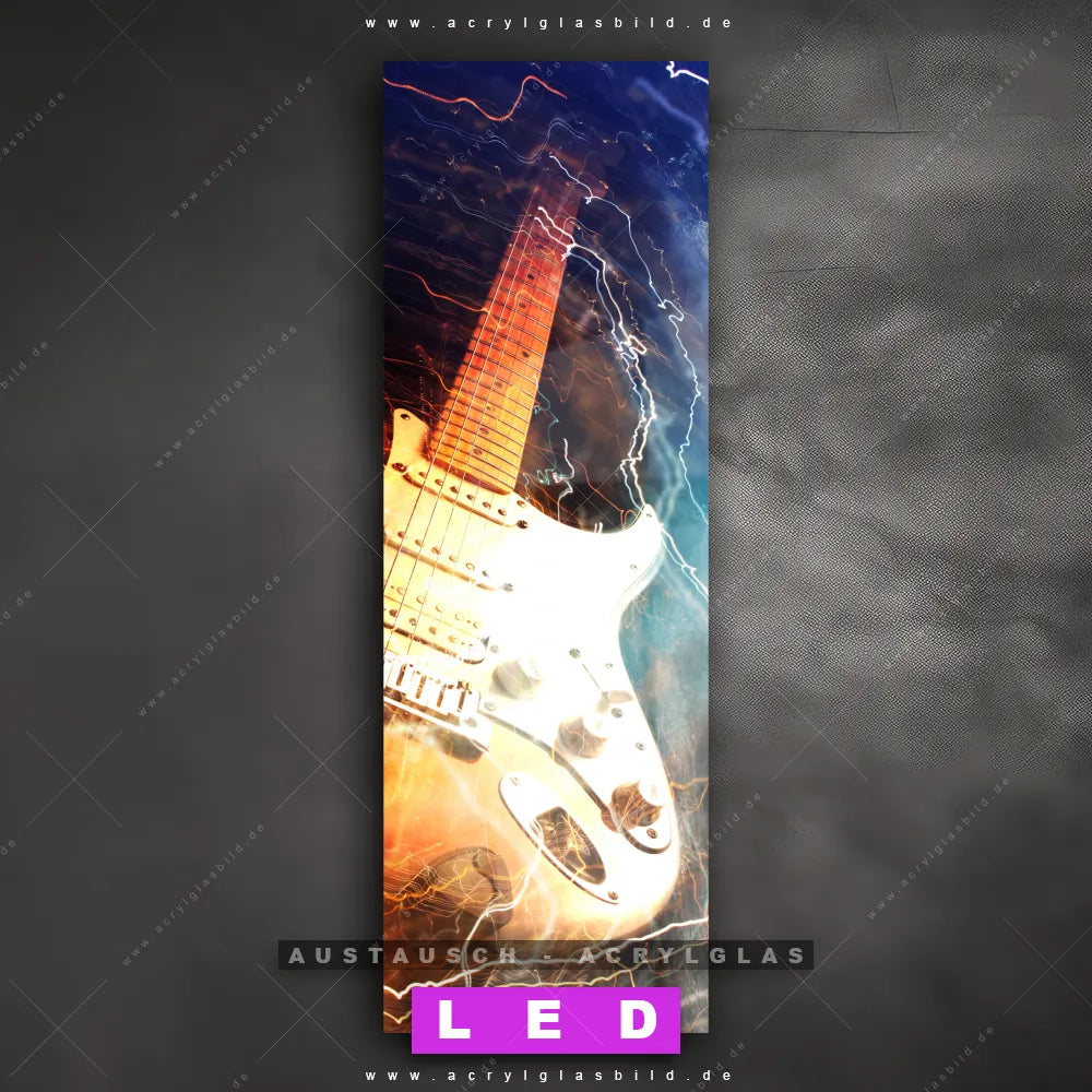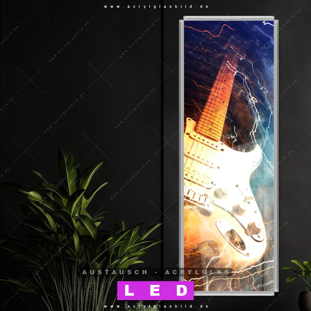 Begriffe wie Musik, Gitarre, Instrument, Strom, Elektrizität haben dich auf der Suche nach deinem neuen Austausch-Acrylglasbild inspiriert? Dann sollte das Wechsel-Acrylglasbild Beat E-Gitarre für dein bereits vorhandenes LED Acrylglasbild Canvalight® DIA den Weg zu dir finden.