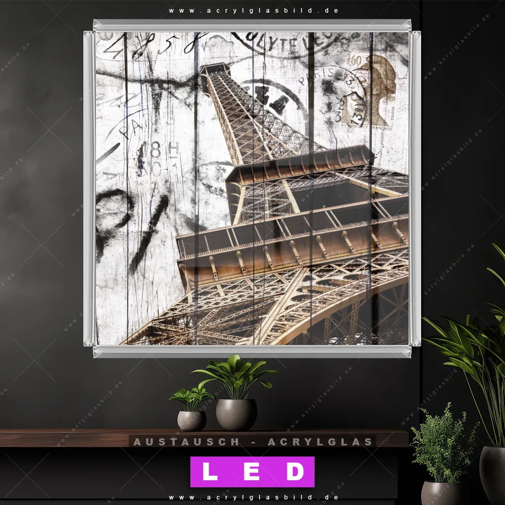 Wechsel-Acrylglas Canvalight® DIA | Eifelturm Shabby Stil | Quadrat