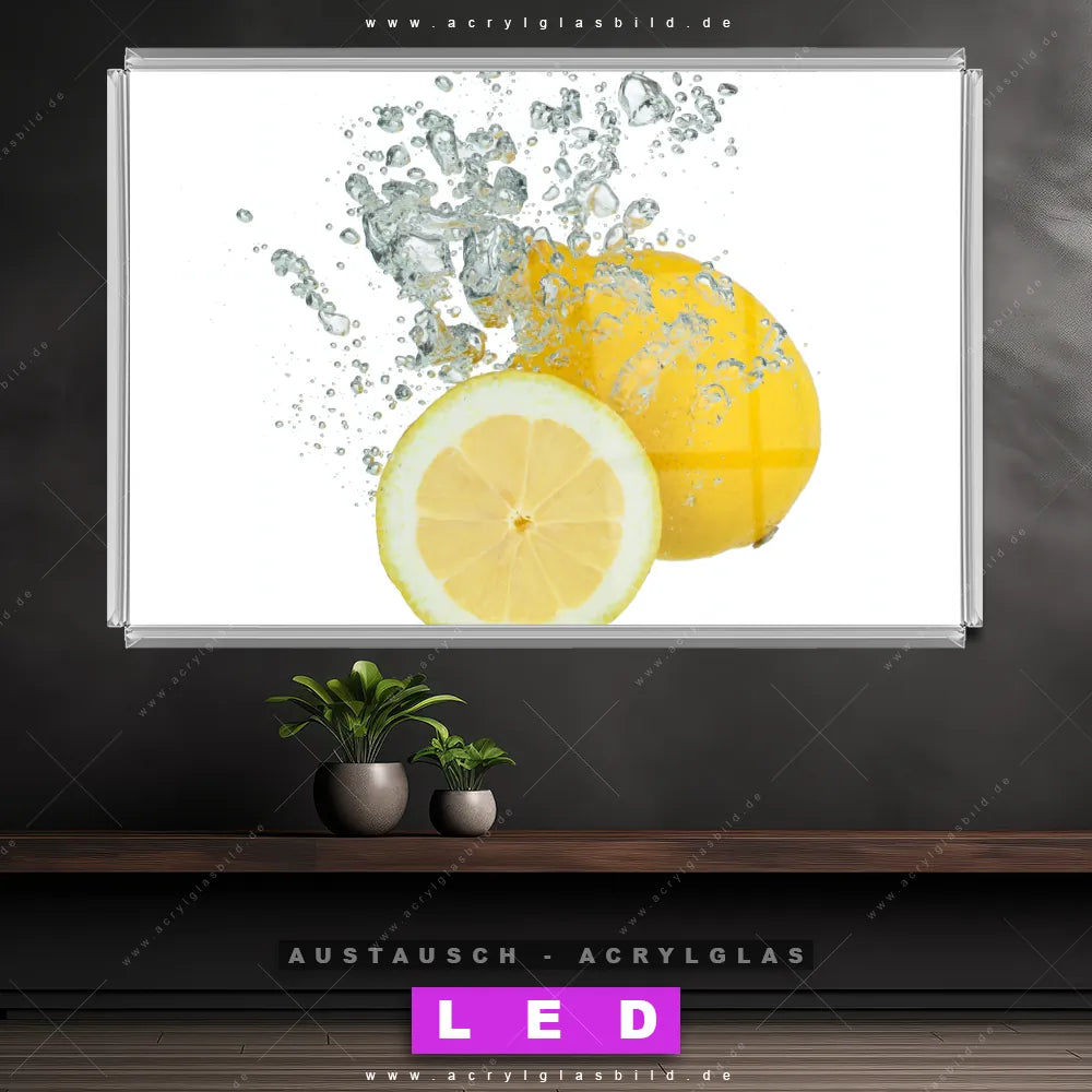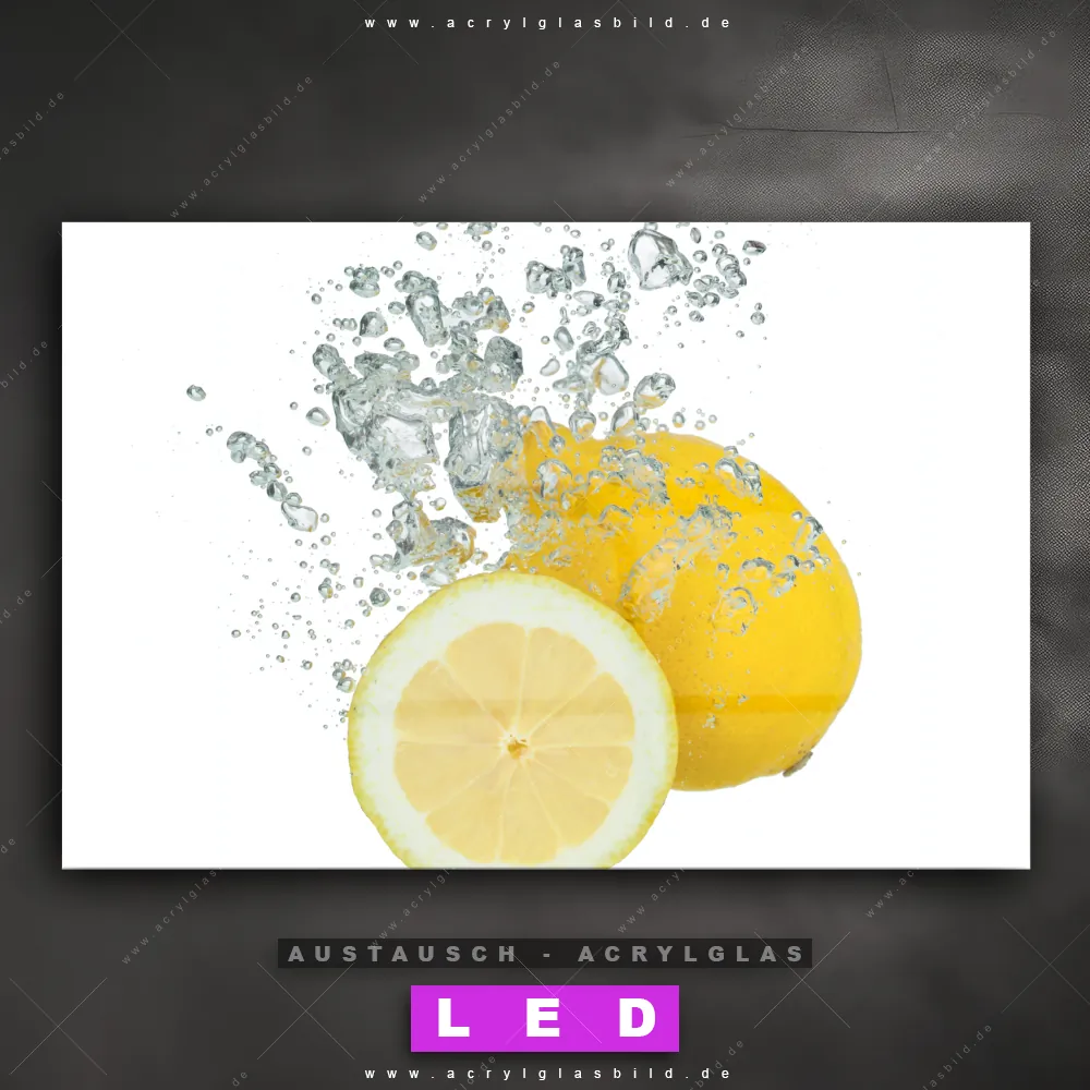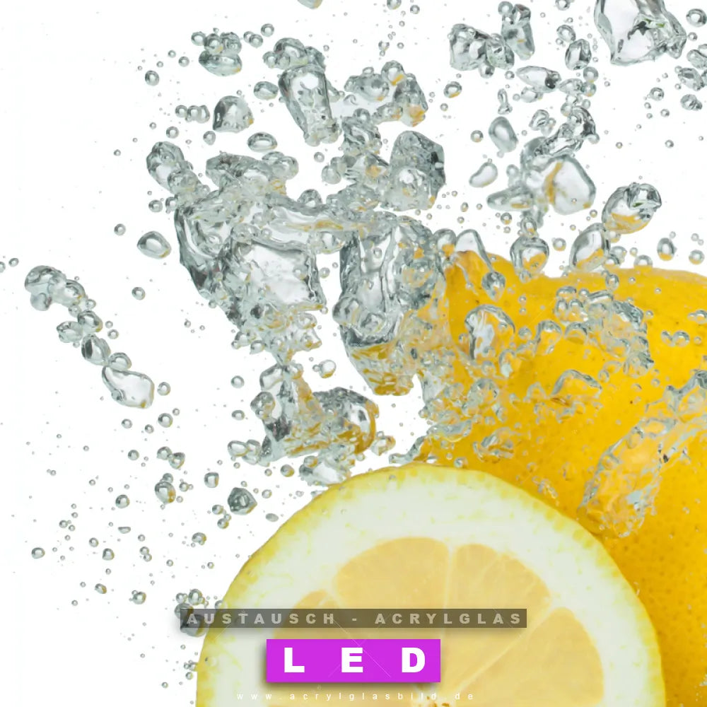 Begriffe wie Obst, zitrusfrüchte, Früchte, Wasser, Zitrone, Spritzer, spritzen, frisch, spritzig haben dich auf der Suche nach deinem neuen Austausch-Acrylglasbild inspiriert? Dann sollte das Wechsel-Acrylglasbild Zitrone mit Wasser für dein bereits vorhandenes LED Acrylglasbild Canvalight® DIA den Weg zu dir finden.