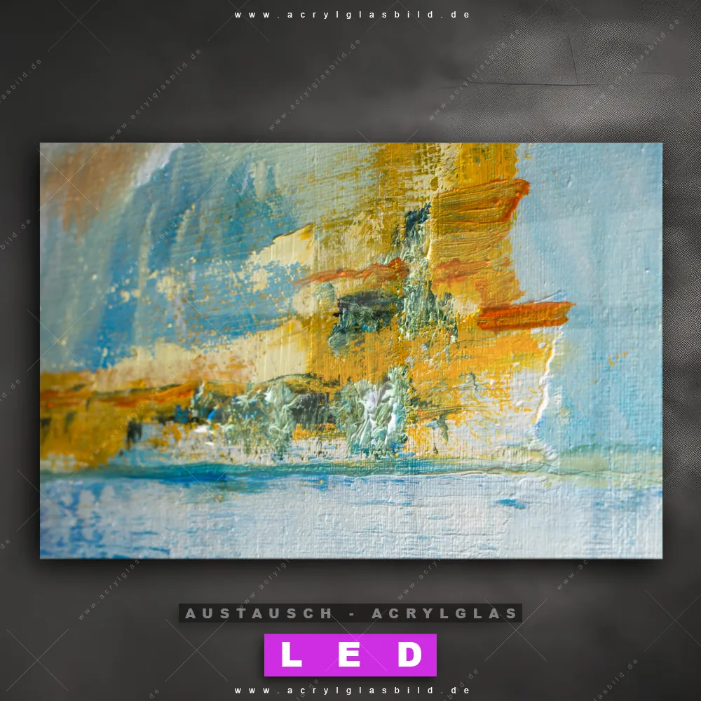 Begriffe wie Abstrakt, Modern, Kunst, Gemälde, Ölfarbe, Leinwand, Meer, Strand, Herbst haben dich auf der Suche nach deinem neuen Austausch-Acrylglasbild inspiriert? Dann sollte das Wechsel-Acrylglasbild Abstraktes Meer für dein bereits vorhandenes LED Acrylglasbild Canvalight® DIA den Weg zu dir finden.