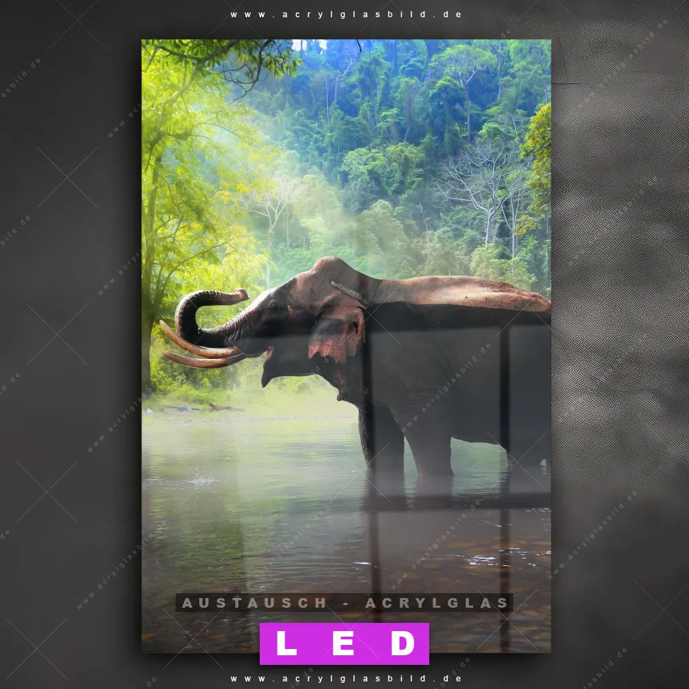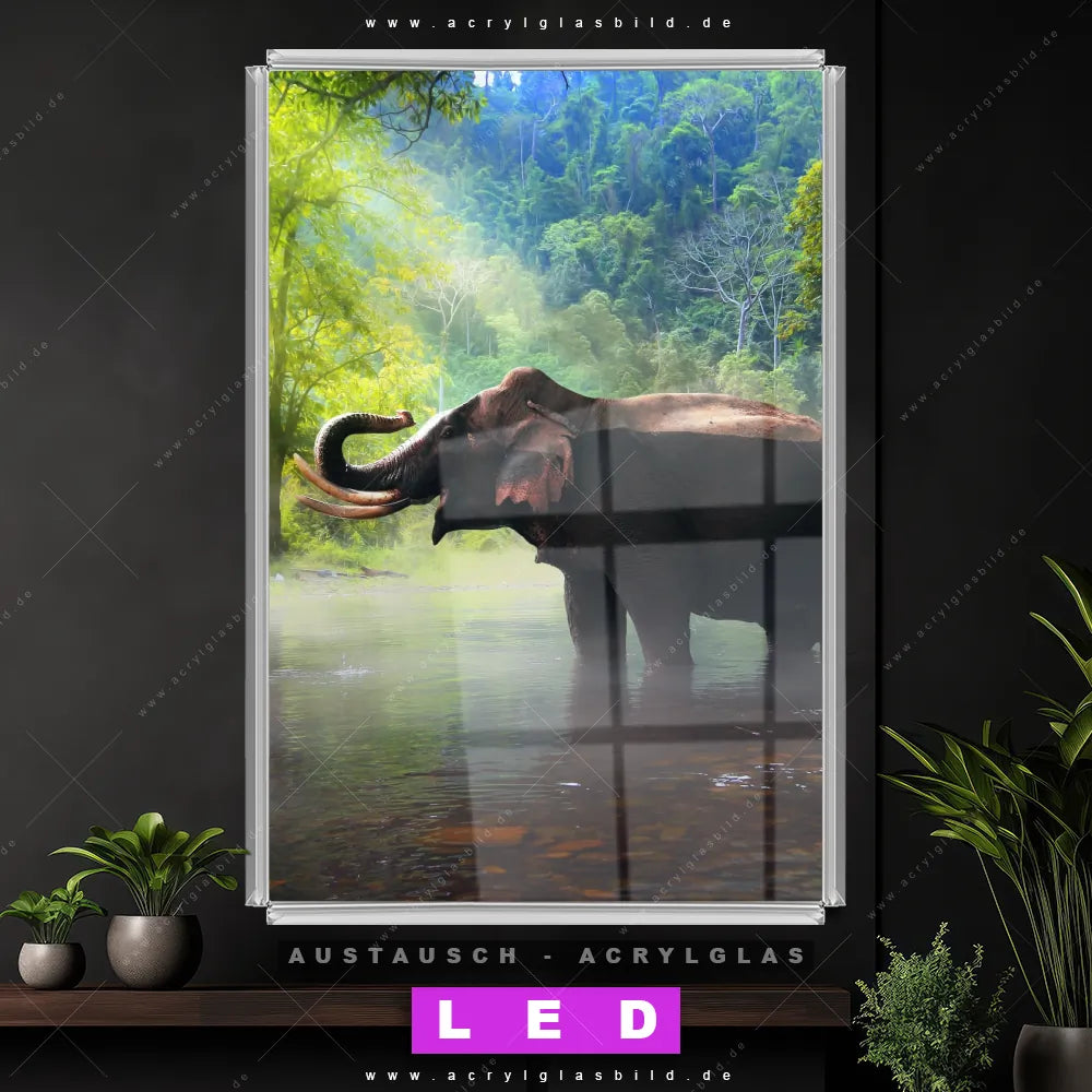 Wechsel-Acrylglas Canvalight® DIA | Elefant im Wasser | Hochformat