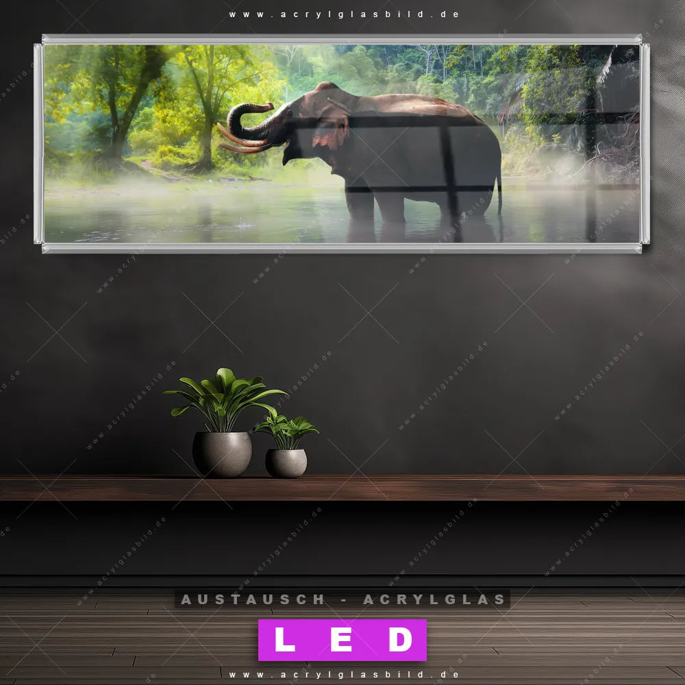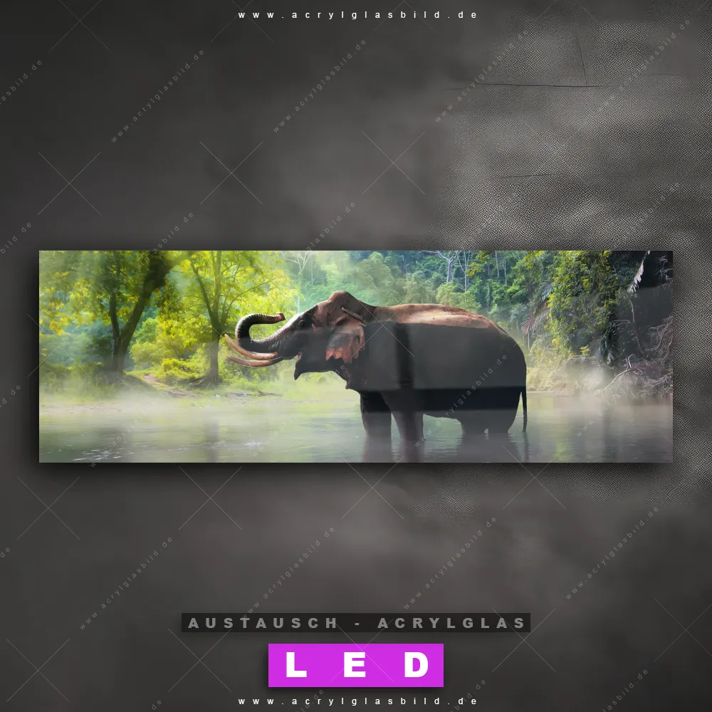 Wechsel-Acrylglas Canvalight® DIA | Elefant im Wasser | Panorama