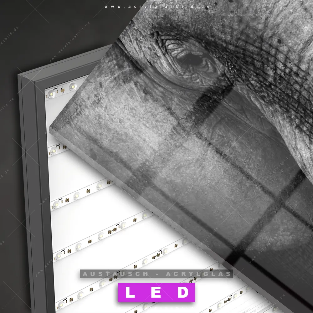 Wechsel-Acrylglas Canvalight® DIA | Elefant Schwarzweiß | Querformat