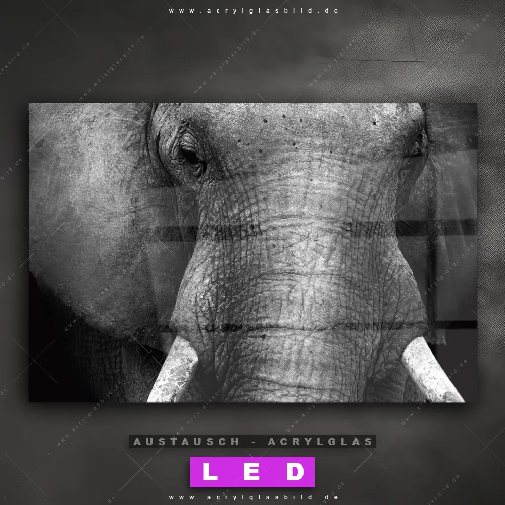 Begriffe wie Afrika, wild, Safari, Tier, Elefant haben dich auf der Suche nach deinem neuen Austausch-Acrylglasbild inspiriert? Dann sollte das Wechsel-Acrylglasbild Elefantenkopf für dein bereits vorhandenes LED Acrylglasbild Canvalight® DIA den Weg zu dir finden.