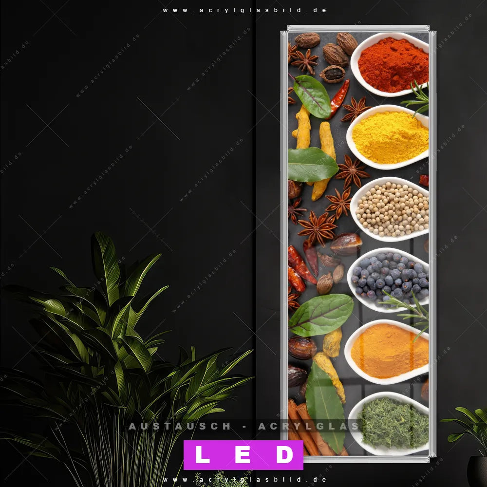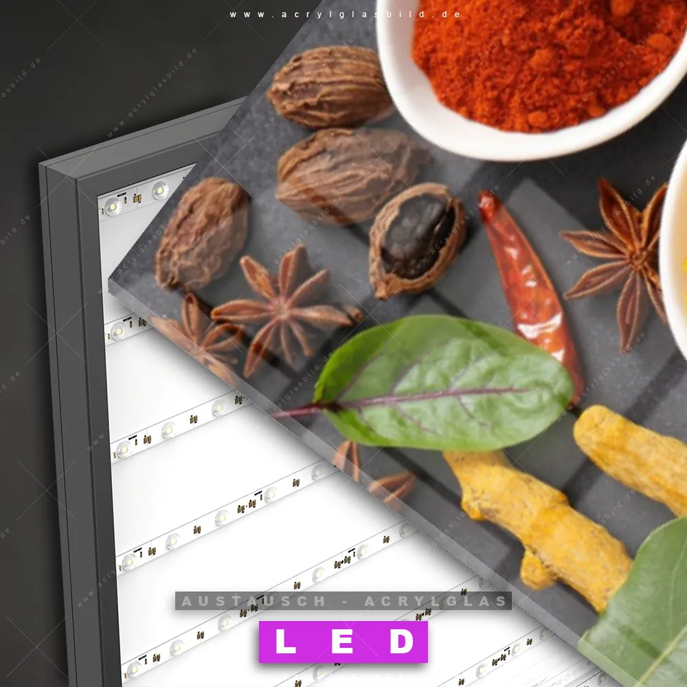 Begriffe wie Gewürze, Kräuter, Löffel, Besteck, Lebensmittel, Geschmack, Indien haben dich auf der Suche nach deinem neuen Austausch-Acrylglasbild inspiriert? Dann sollte das Wechsel-Acrylglasbild Löffel mit bunten Gewürzen für dein bereits vorhandenes LED Acrylglasbild Canvalight® DIA den Weg zu dir finden.