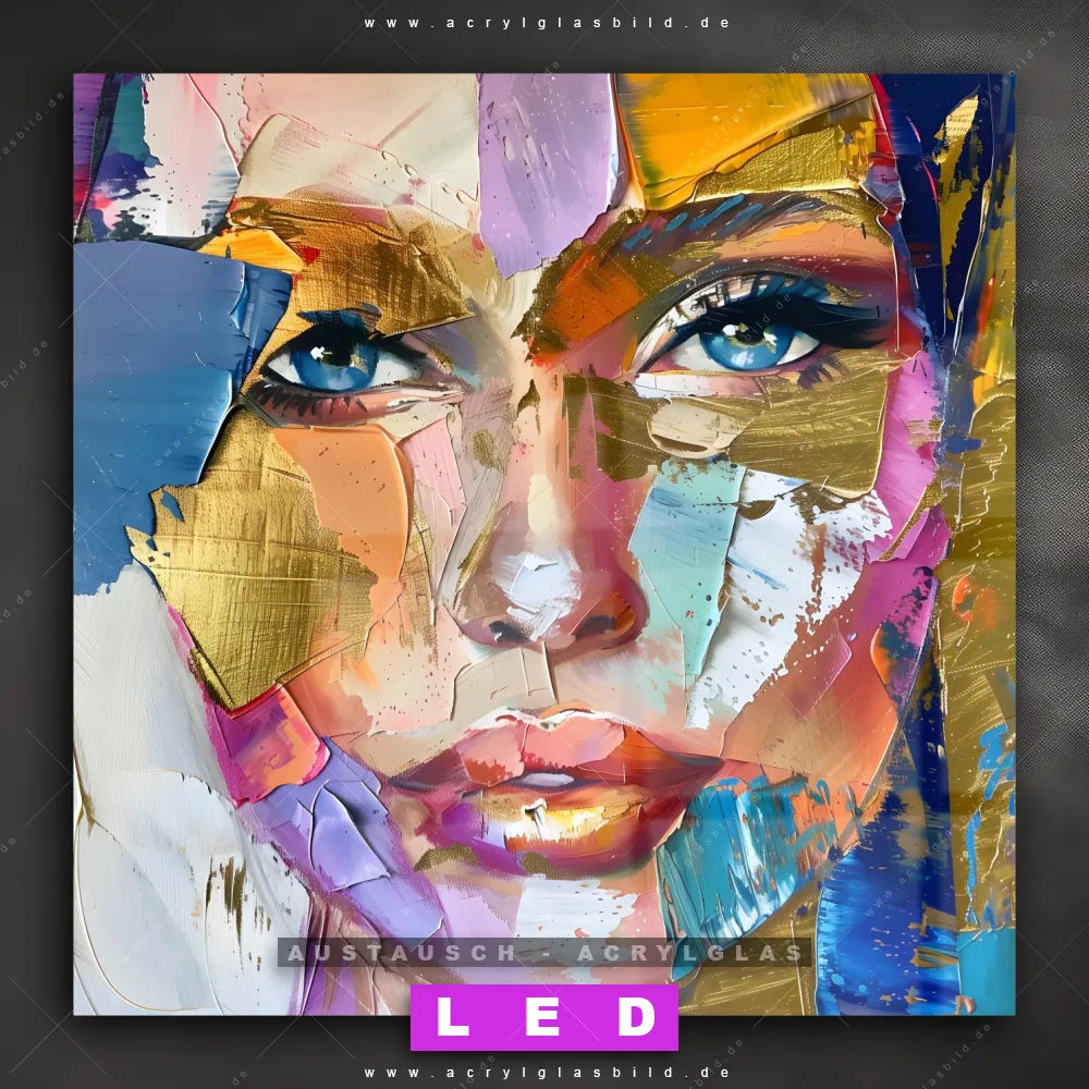 Begriffe wie Frauenporträt, Gesicht, Farbexplosion, Farbspritzer, Frau, Porträt haben dich auf der Suche nach deinem neuen Austausch-Acrylglasbild inspiriert? Dann sollte das Wechsel-Acrylglasbild Frauengesicht im abstrakten Stil für dein bereits vorhandenes LED Acrylglasbild Canvalight® DIA den Weg zu dir finden.