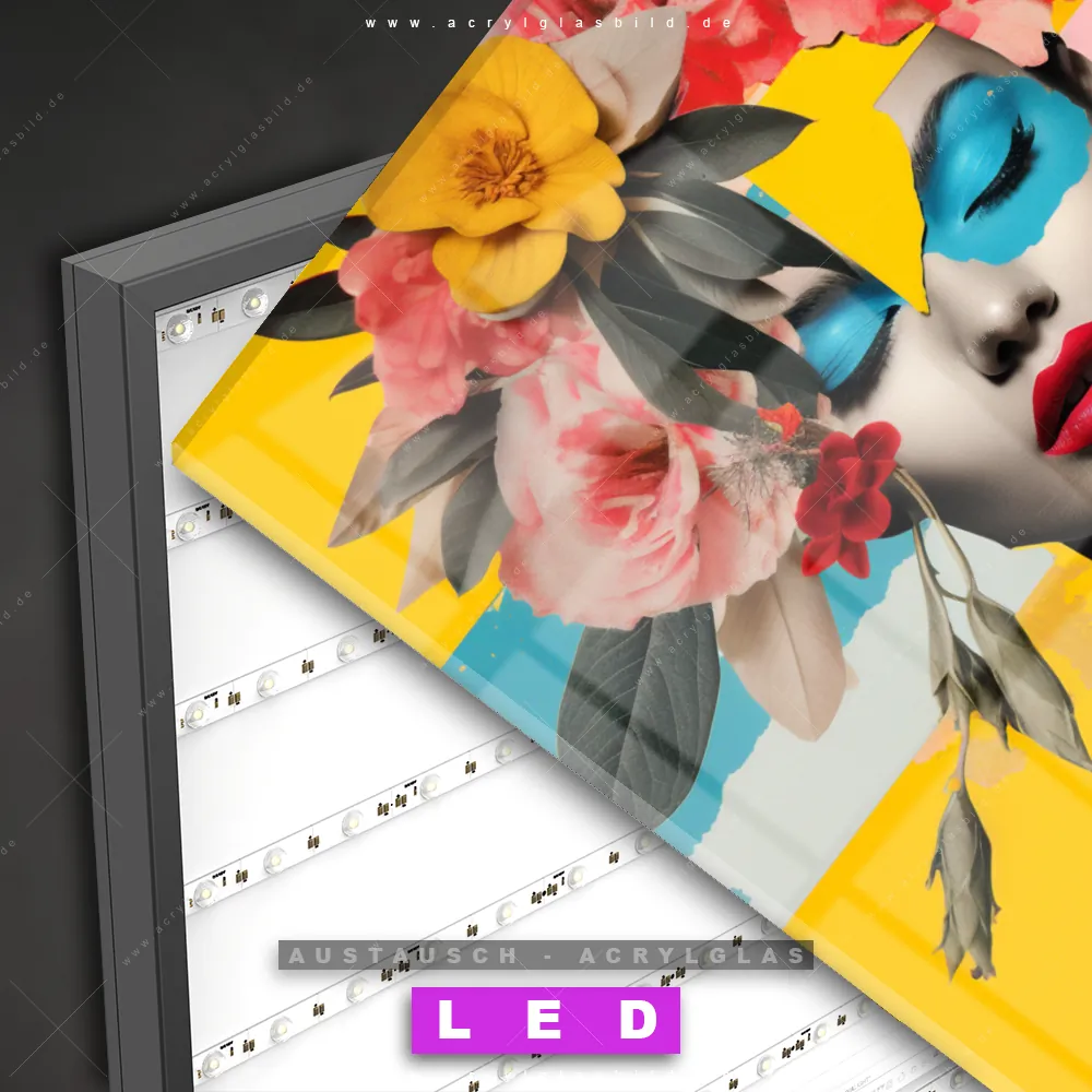 Wechsel-Acrylglas Canvalight® DIA | Florales Frauenporträt - Fiona | Quadrat