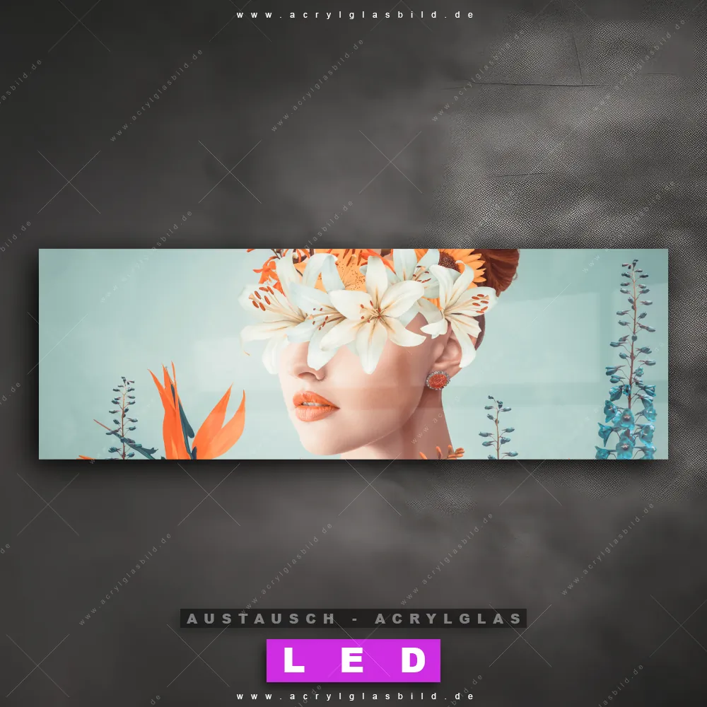 Wechsel-Acrylglas Canvalight® DIA | Florales Frauenporträt - Viola | Panorama