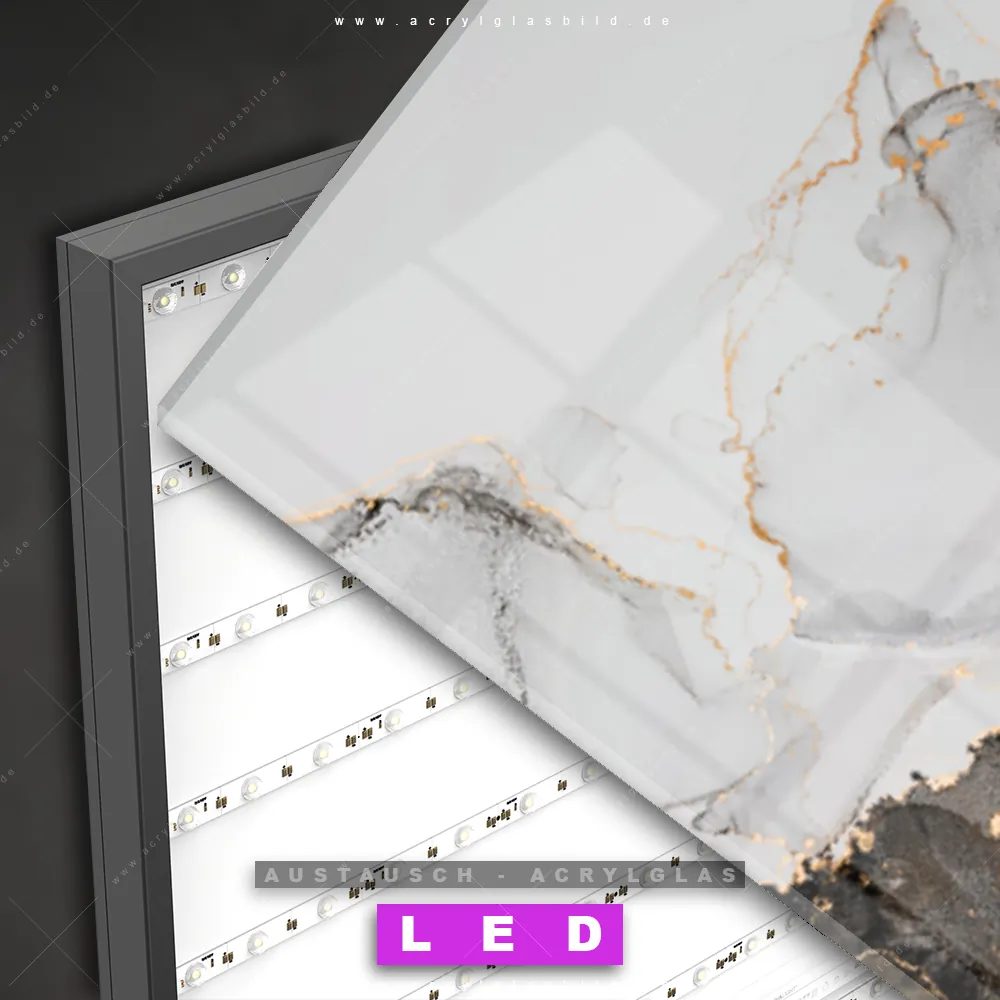 Begriffe wie Flüssigkeit, Acryl, flüssig, Farbe, Marmorierung, Tinte, Alkohol, Goldader, Fluid Art haben dich auf der Suche nach deinem neuen Austausch-Acrylglasbild inspiriert? Dann sollte das Wechsel-Acrylglasbild Marmormuster für dein bereits vorhandenes LED Acrylglasbild Canvalight® DIA den Weg zu dir finden.