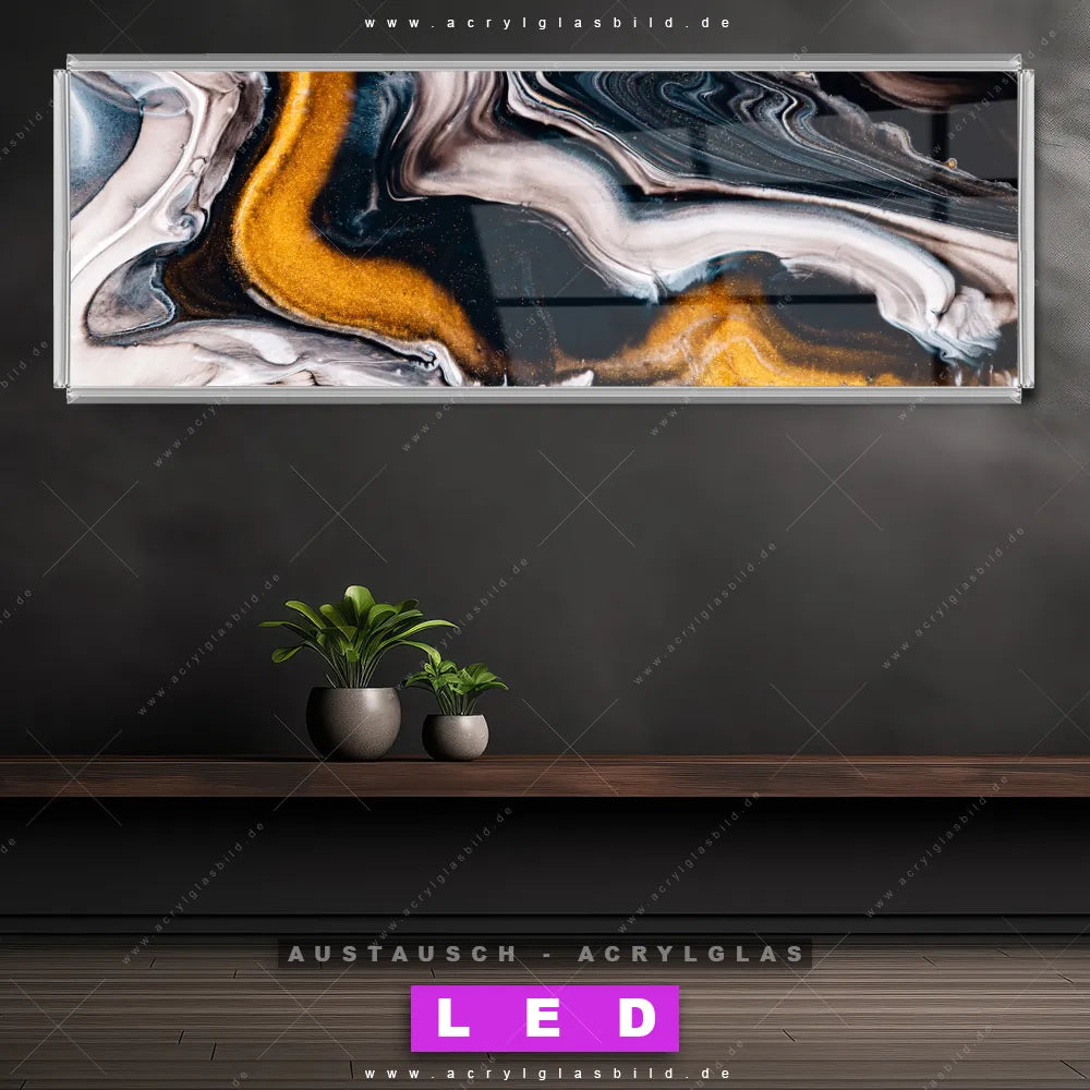 Wechsel-Acrylglas Canvalight® DIA | Fluid Art Goldrausch | Panorama