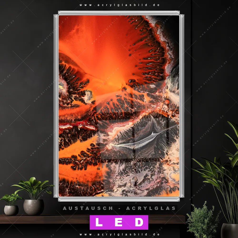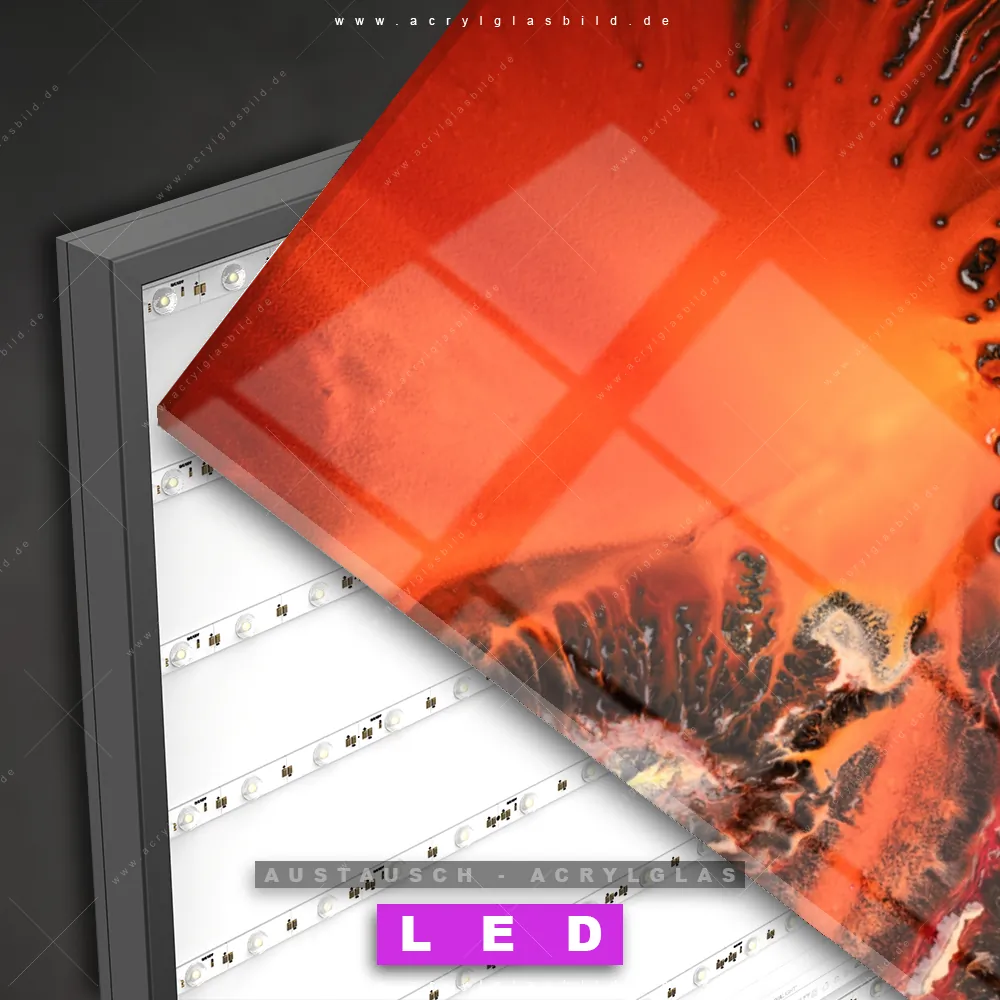 Begriffe wie Flüssigkeit, Acryl, flüssig, Farbe, Marmorierung, Tinte, Alkohol, Lava, Glut, Vulkan, Fluid Art haben dich auf der Suche nach deinem neuen Austausch-Acrylglasbild inspiriert? Dann sollte das Wechsel-Acrylglasbild Lava im Fluid Painting für dein bereits vorhandenes LED Acrylglasbild Canvalight® DIA den Weg zu dir finden.