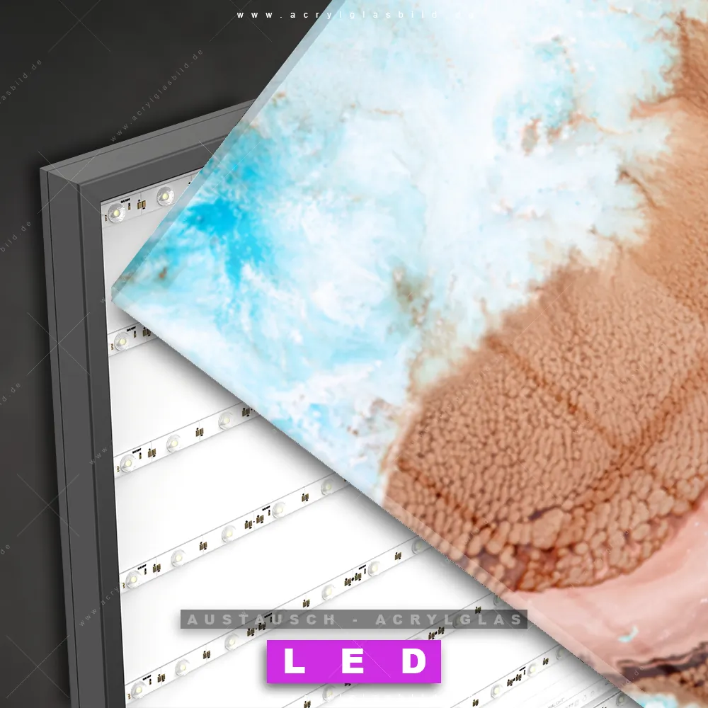 Begriffe wie Flüssigkeit, Acryl, flüssig, Farbe, Marmorierung, Tinte, Alkohol, Strand, Meer, Ozean, Sand, Fluid Art haben dich auf der Suche nach deinem neuen Austausch-Acrylglasbild inspiriert? Dann sollte das Wechsel-Acrylglasbild abstrakter Strand für dein bereits vorhandenes LED Acrylglasbild Canvalight® DIA den Weg zu dir finden.