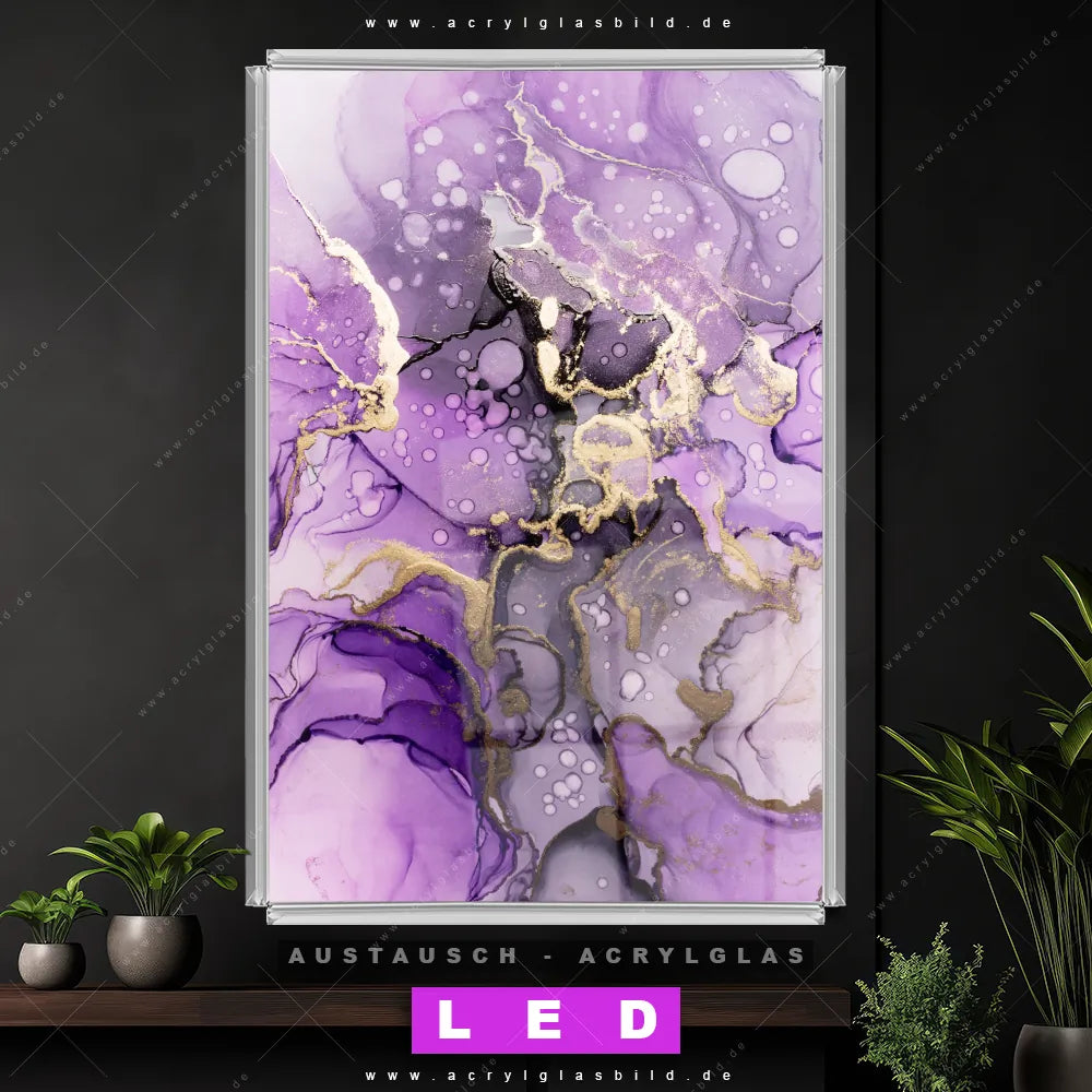 Wechsel-Acrylglas Canvalight® DIA | Fluid Art Violett | Hochformat
