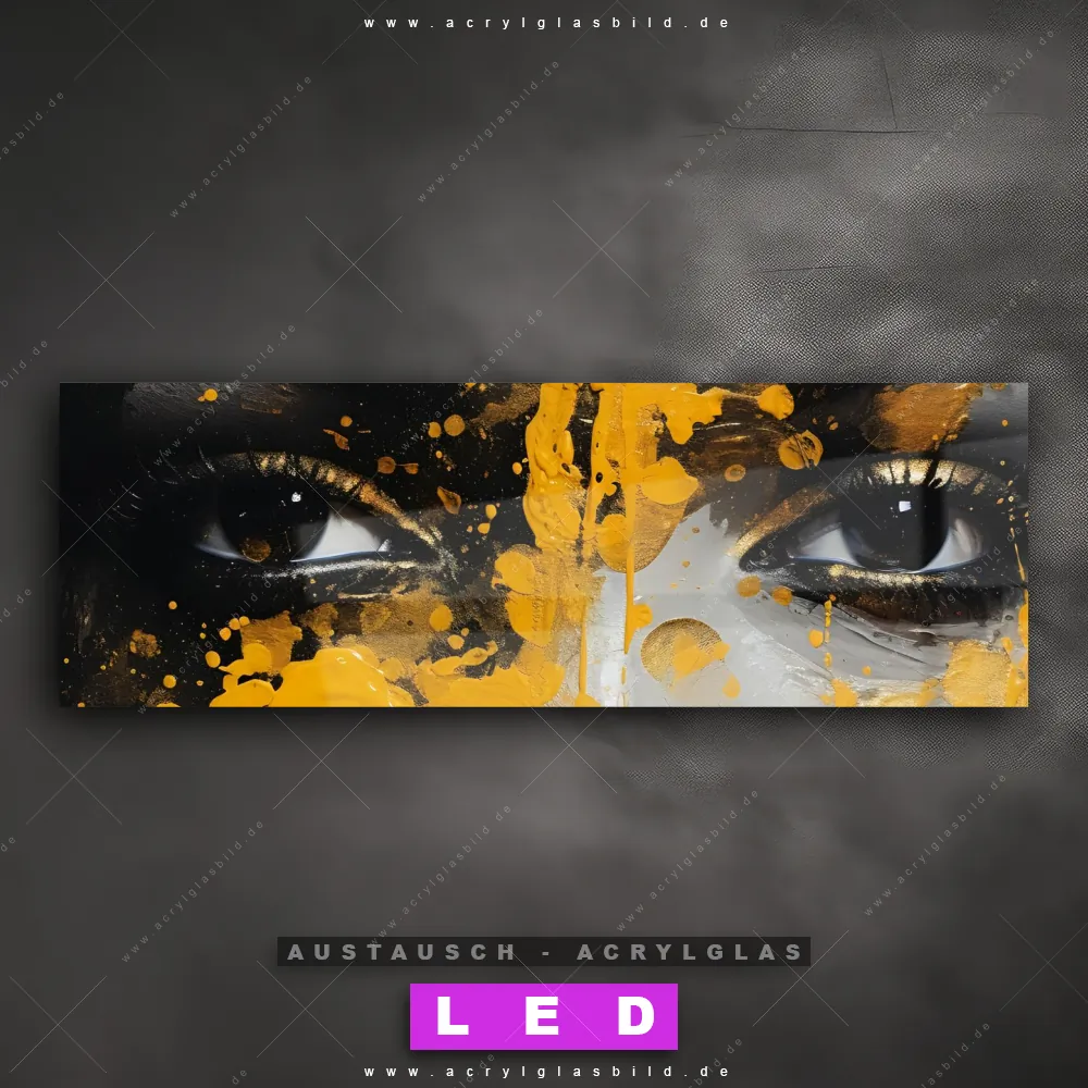 Begriffe wie Gesicht, Farbexplosion, Farbspritzer, Frau, Lippen, Beauty haben dich auf der Suche nach deinem neuen Austausch-Acrylglasbild inspiriert? Dann sollte das Wechsel-Acrylglasbild Goldenes Gesicht für dein bereits vorhandenes LED Acrylglasbild Canvalight® DIA den Weg zu dir finden.