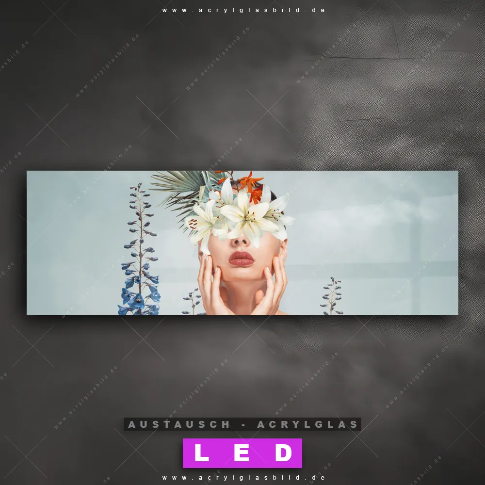 Wechsel-Acrylglas Canvalight® DIA | Frauenportrait mit Blumen | Panorama