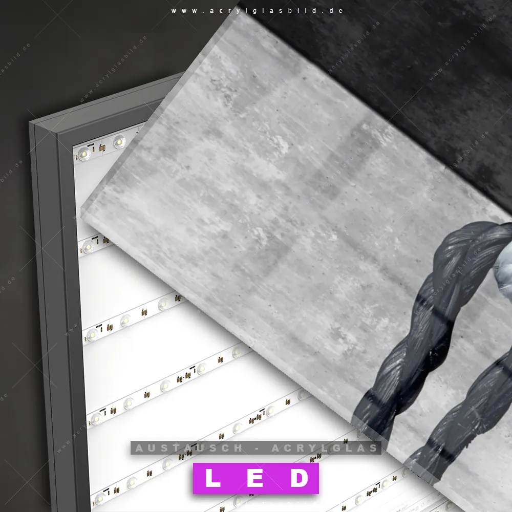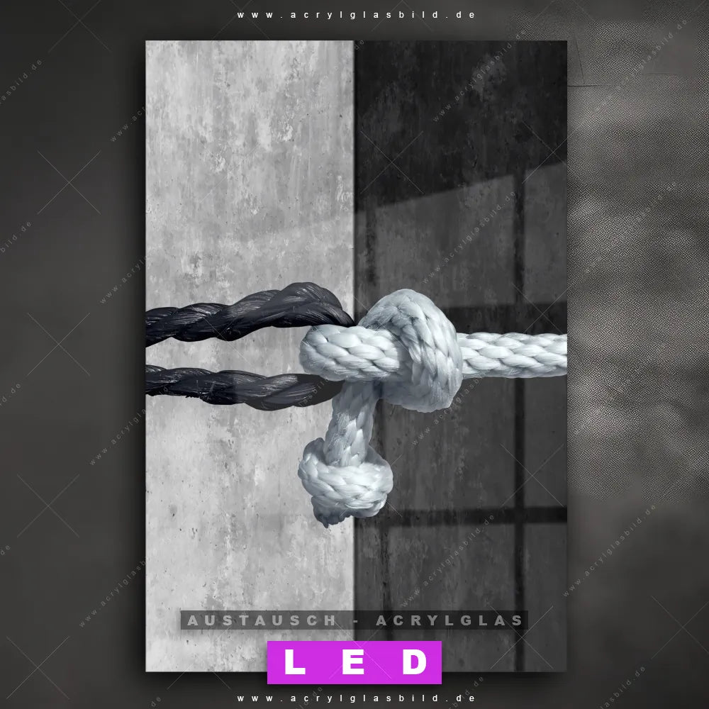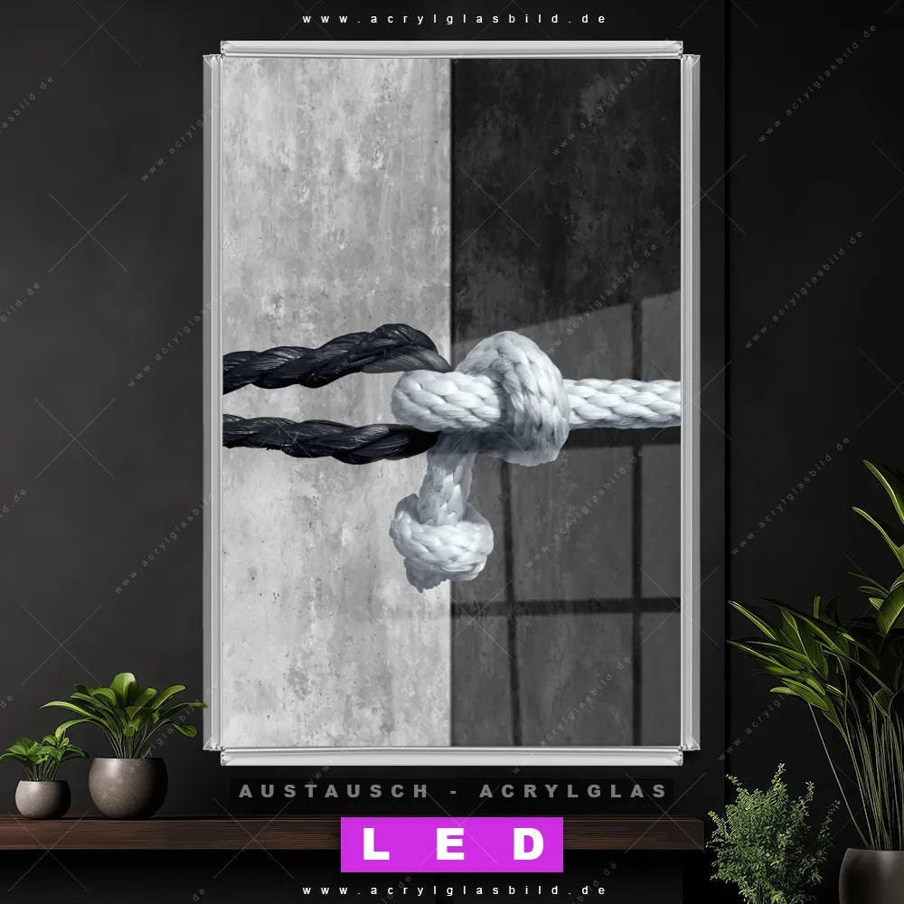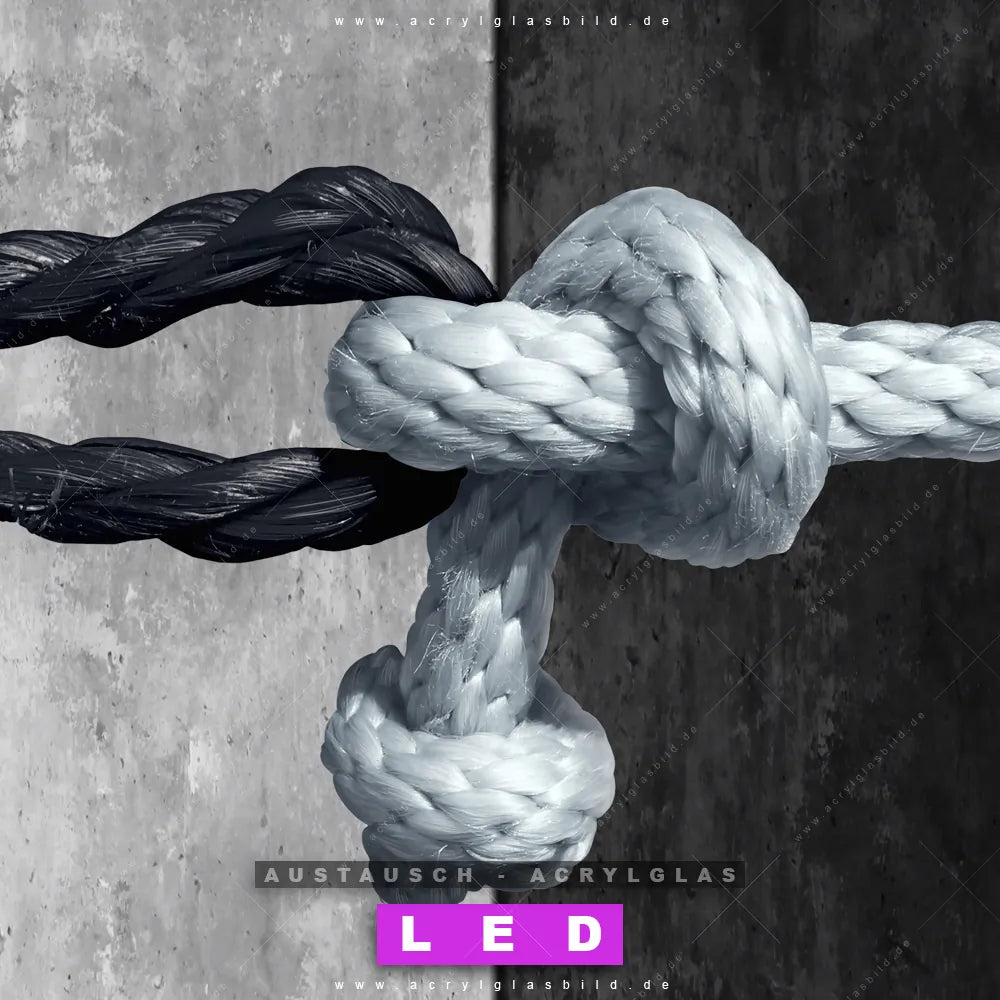 Begriffe wie Yin Yang, Feng Shui, Buddhismus, Meditation, Zen, Religion haben dich auf der Suche nach deinem neuen Austausch-Acrylglasbild inspiriert? Dann sollte das Wechsel-Acrylglasbild symbolisch verknotete Seile für dein bereits vorhandenes LED Acrylglasbild Canvalight® DIA den Weg zu dir finden.