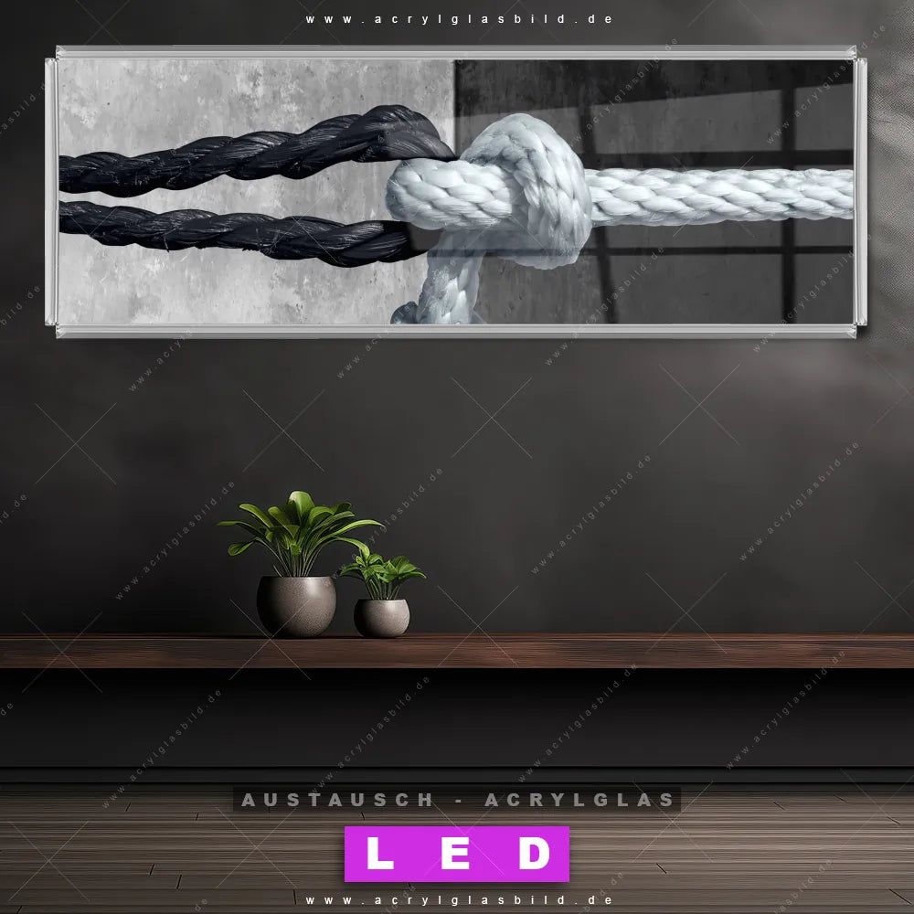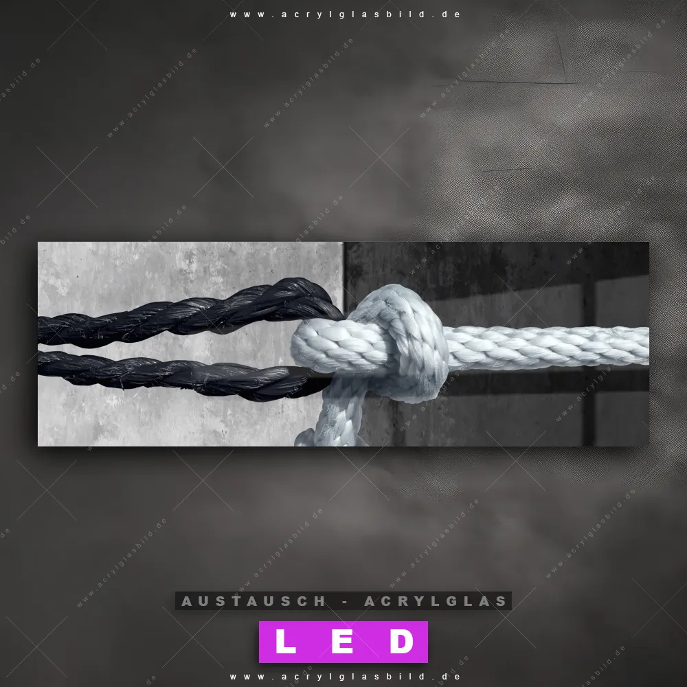 Begriffe wie Yin Yang, Feng Shui, Buddhismus, Meditation, Zen, Religion haben dich auf der Suche nach deinem neuen Austausch-Acrylglasbild inspiriert? Dann sollte das Wechsel-Acrylglasbild symbolisch verknotete Seile für dein bereits vorhandenes LED Acrylglasbild Canvalight® DIA den Weg zu dir finden.