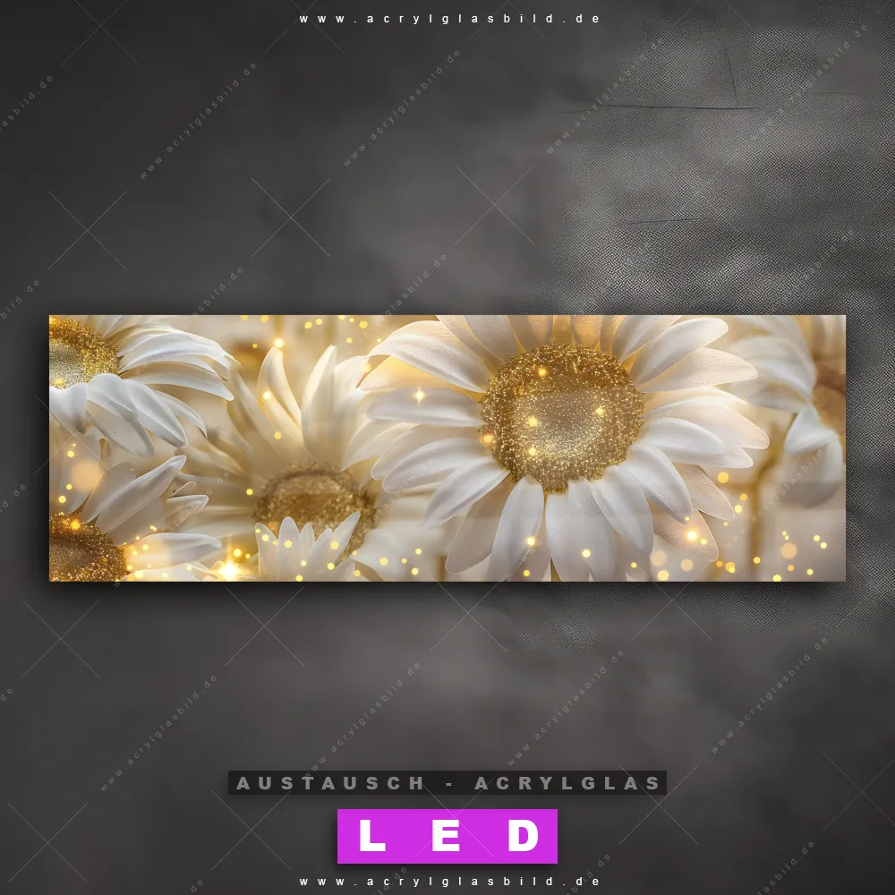 Wechsel-Acrylglas Canvalight® DIA | Funkelnde Blumen in Gold | Panorama
