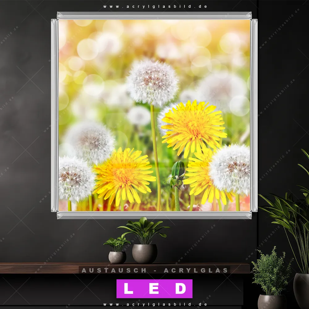 Wechsel-Acrylglas Canvalight® DIA | Gelber Löwenzahn | Quadrat