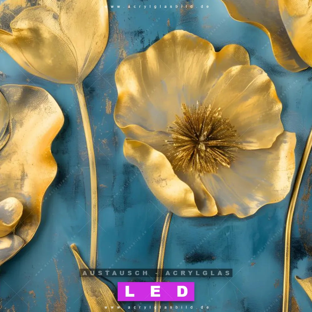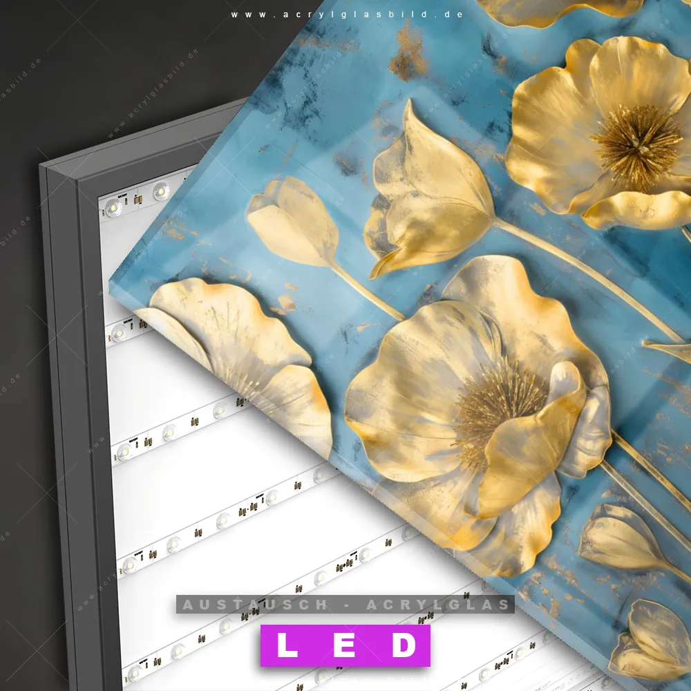 Begriffe wie Blüten, Blumen, Pflanze, Natur, Frühling, Mohnblumen, Klatschmohn, Mohn haben dich auf der Suche nach deinem neuen Austausch-Acrylglasbild inspiriert? Dann sollte das Wechsel-Acrylglasbild Goldene Mohn-Blüten für dein bereits vorhandenes LED Acrylglasbild Canvalight® DIA den Weg zu dir finden.