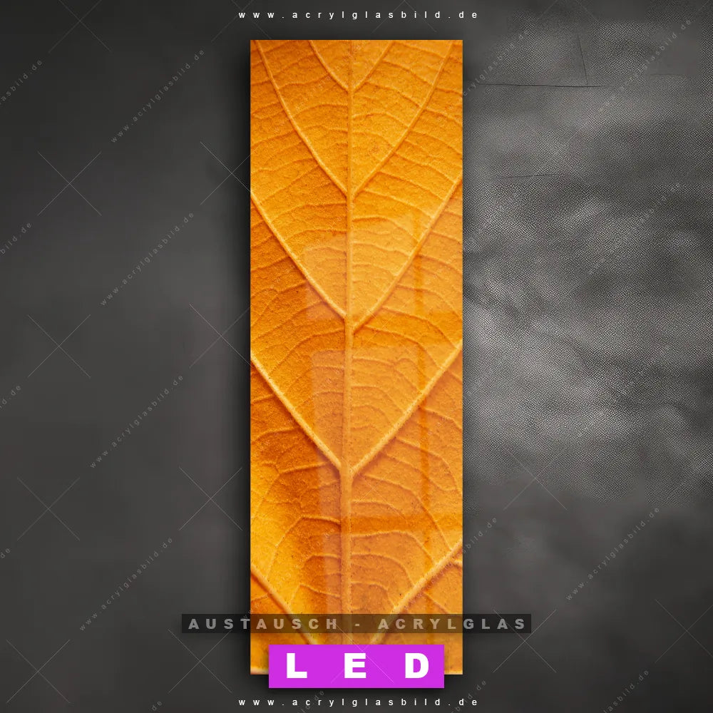 Begriffe wie Pflanze, Natur, Nahaufnahme, Vogelperspektive, Draufsicht, Blatt, Blätter haben dich auf der Suche nach deinem neuen Austausch-Acrylglasbild inspiriert? Dann sollte das Wechsel-Acrylglasbild Laubblatt in gold für dein bereits vorhandenes LED Acrylglasbild Canvalight® DIA den Weg zu dir finden.