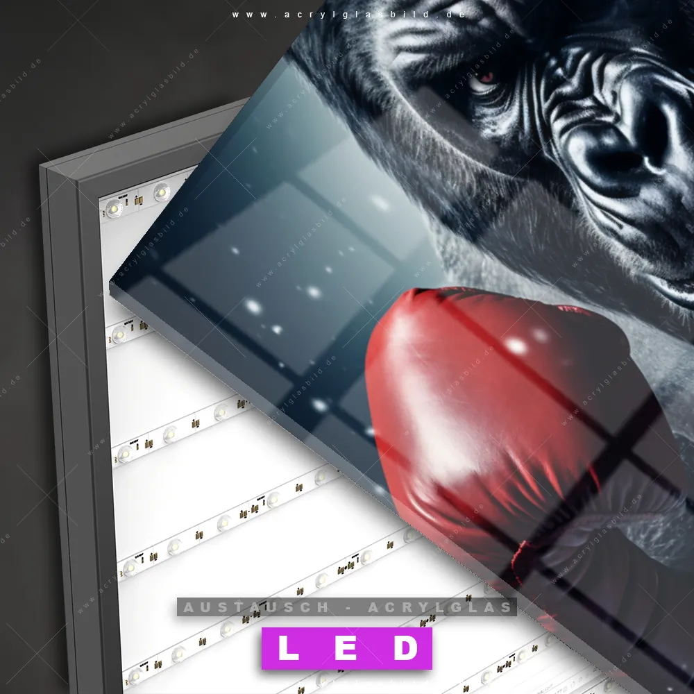 Wechsel-Acrylglas Canvalight® DIA | Gorilla mit roten Boxhandschuhen | Querformat