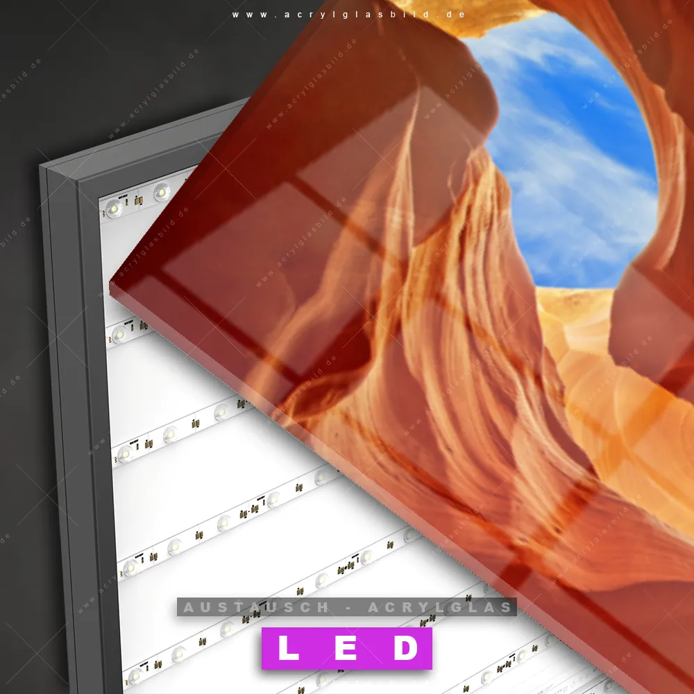 ▶️ ACHTUNG: Du solltest bereits ein LED Acrylglasbild Canvalight® DIA besitzen! ▶️ Acrylglas-Scheibe zum Austauschen ▶️ von hinten bedruckt | 3mm stark ▶️ Acrylglas-Scheibe in Höhe & Breite je 15mm kleiner als angegebenes Maß ▶️ für DIA-Klapprahmen-System zum einfachen Wechseln der Motive ▶️ faszinierender Tiefeneffekt ▶️ nur Acrylglas-Druck ohne Leuchtrahmen