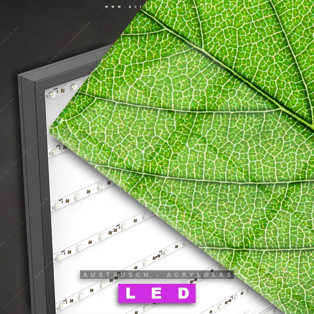 Begriffe wie Natur, Wald, Baum, Blatt, Botanik, Pflanzen haben dich auf der Suche nach deinem neuen Austausch-Acrylglasbild inspiriert? Dann sollte das Wechsel-Acrylglasbild Laubblätter Blattadern für dein bereits vorhandenes LED Acrylglasbild Canvalight® DIA den Weg zu dir finden.