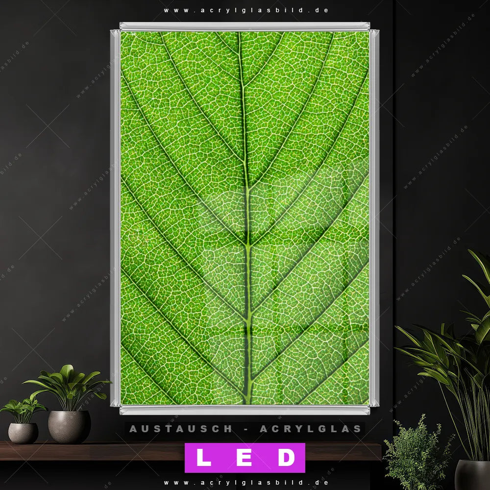 Wechsel-Acrylglas Canvalight® DIA | Grüne Blattadern | Hochformat